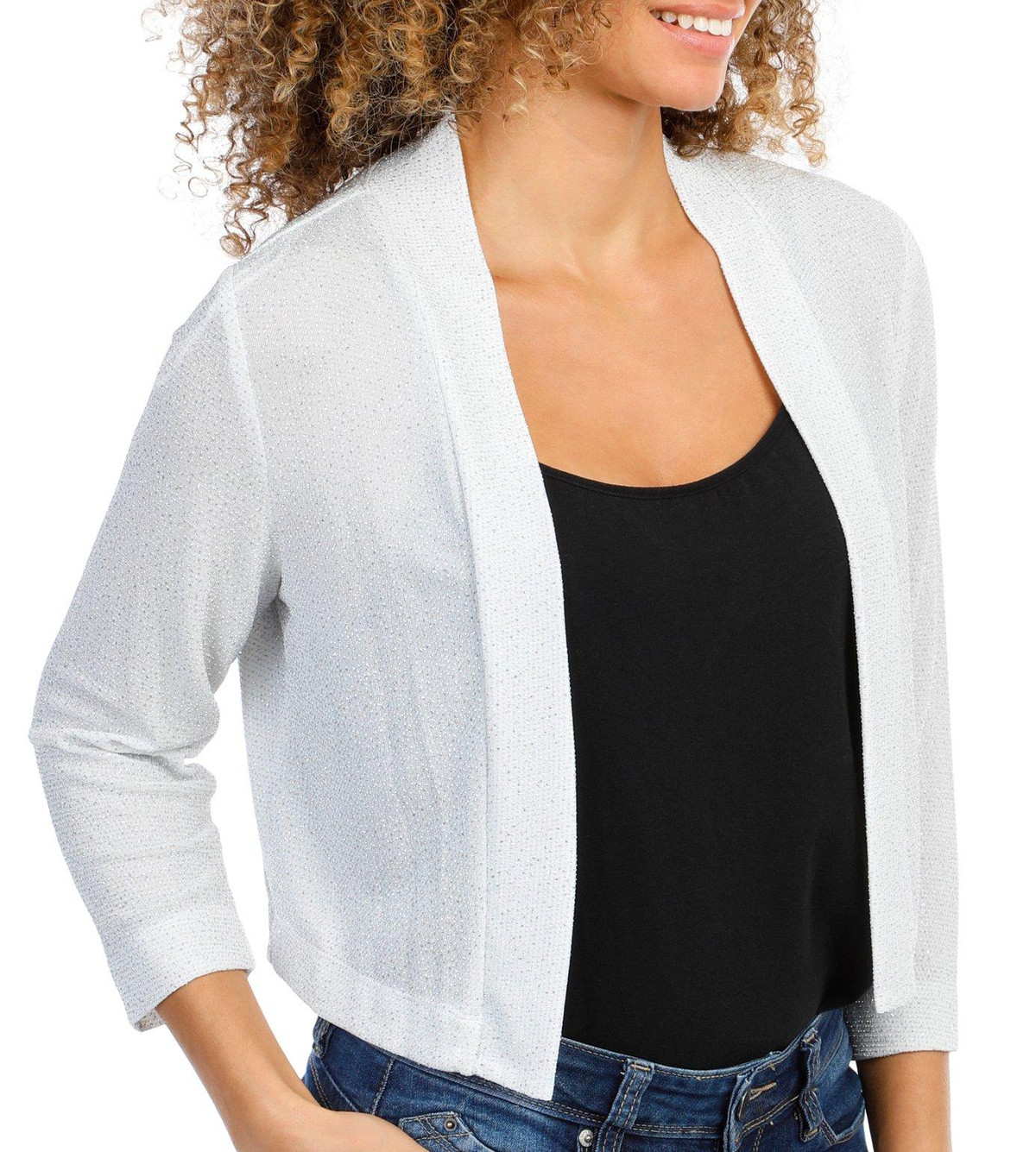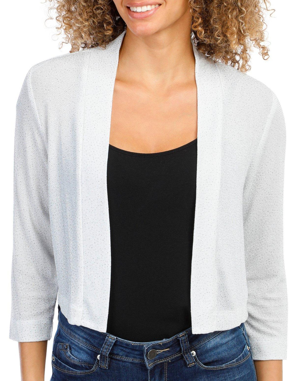 Elevate your style with our Womens Glitter Open Front Cardigan. This chic and versatile piece features a shimmering glitter finish that adds a touch of glamour to any outfit. The open front design makes it easy to layer over your favorite tops, while the lightweight fabric ensures comfort throughout the day. Fabrication is a blend of metallic, nylon and spandex.