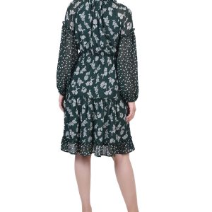Elevate your style with this chic flutter sleeve dress, featuring a playful V-neck with ruffle detail and a flounced hem. Made from comfortable scuba fabric, this dress is perfect for both work and play. Its fun and flirty design ensures you look effortlessly stylish, whether youre at the office or out for a night on the town. Length measures approximately 39 in. Fabrication 95% polyester, 5% spandex.