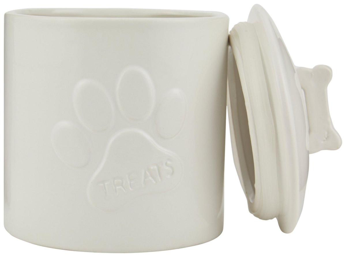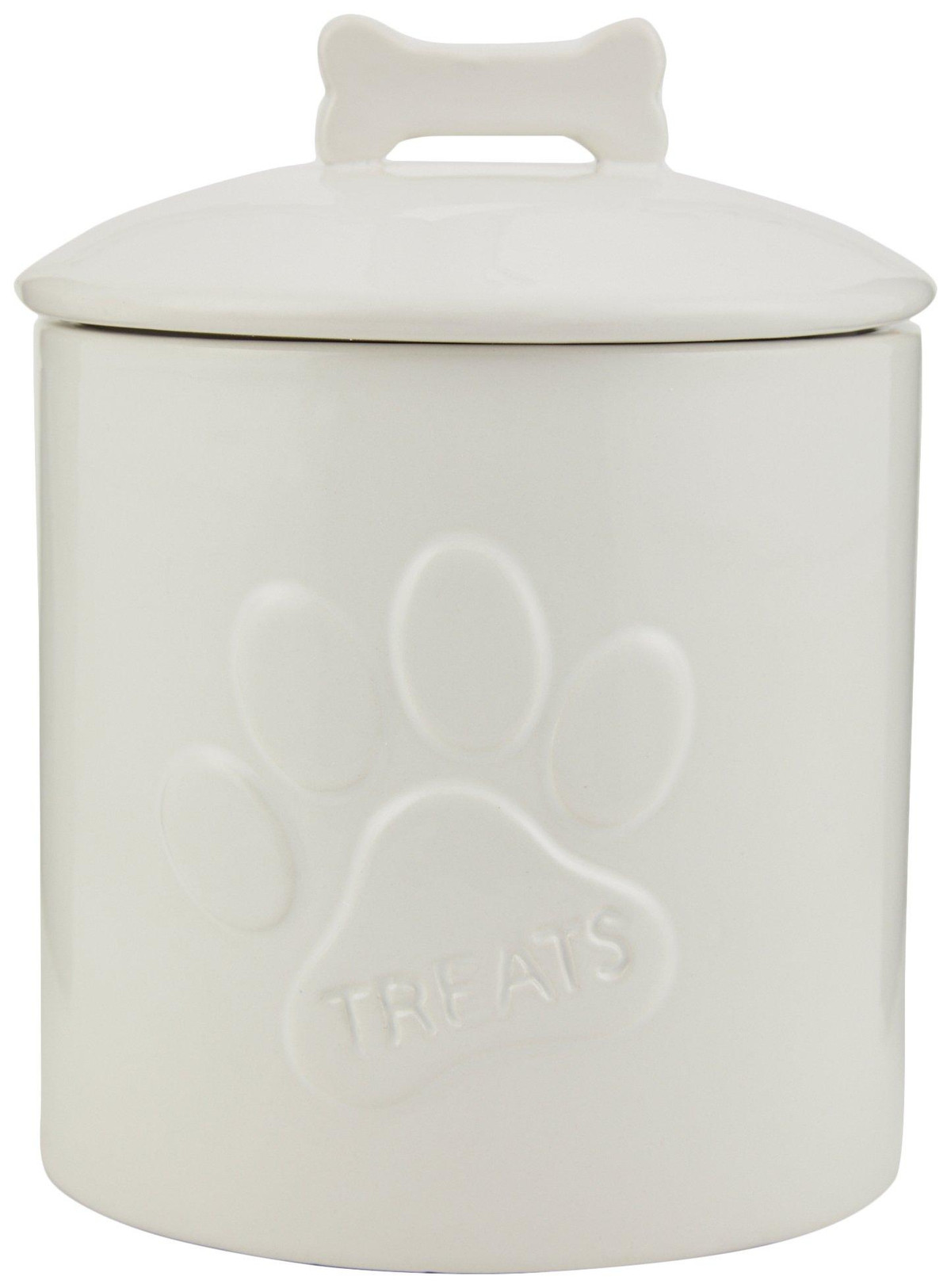 Keep food and treats fresh with this cannister from Pets by Godinger. Featuring a raised oversized paw print design, this minimalist storage option is perfect for every dog.
