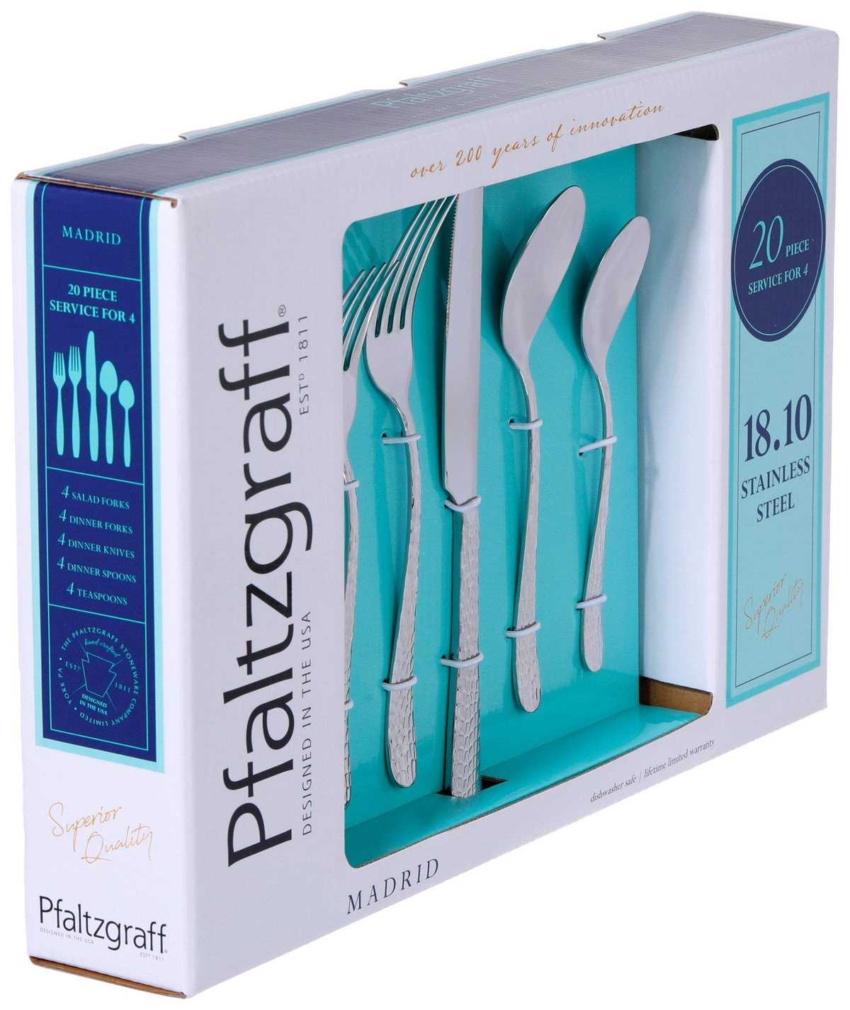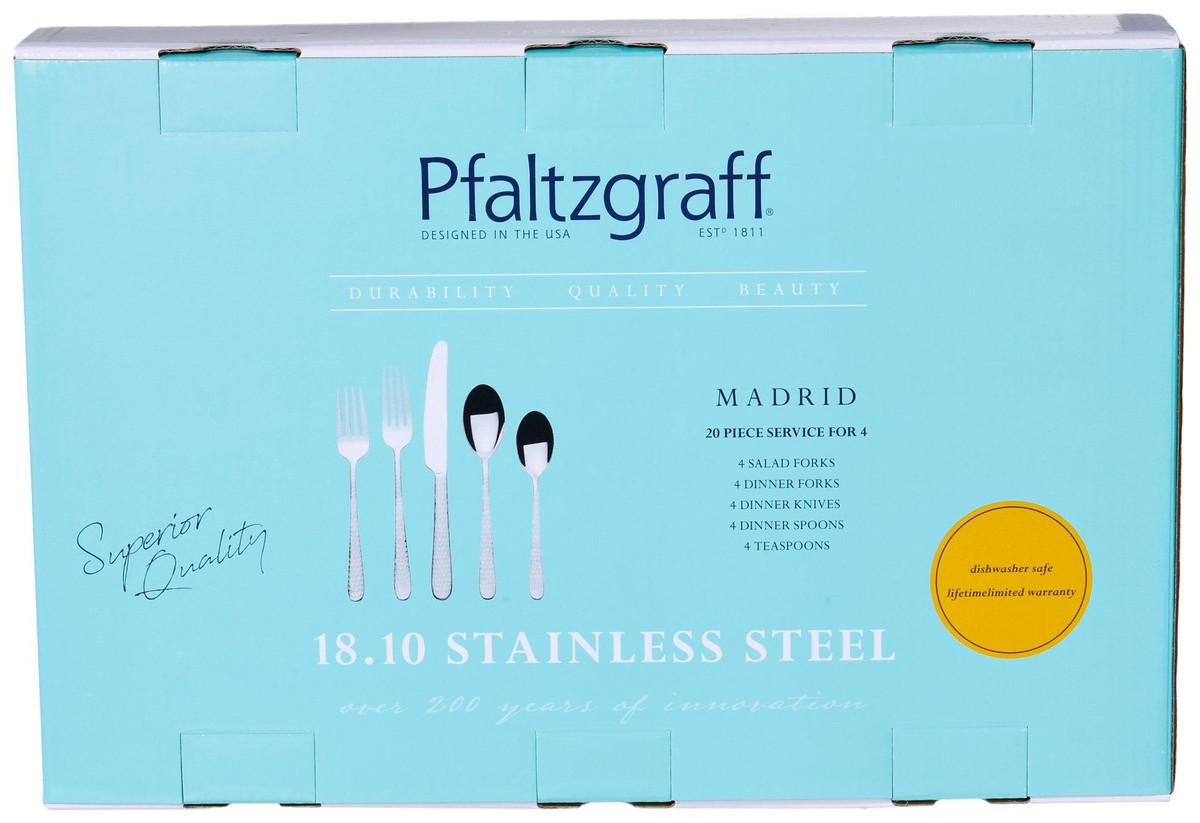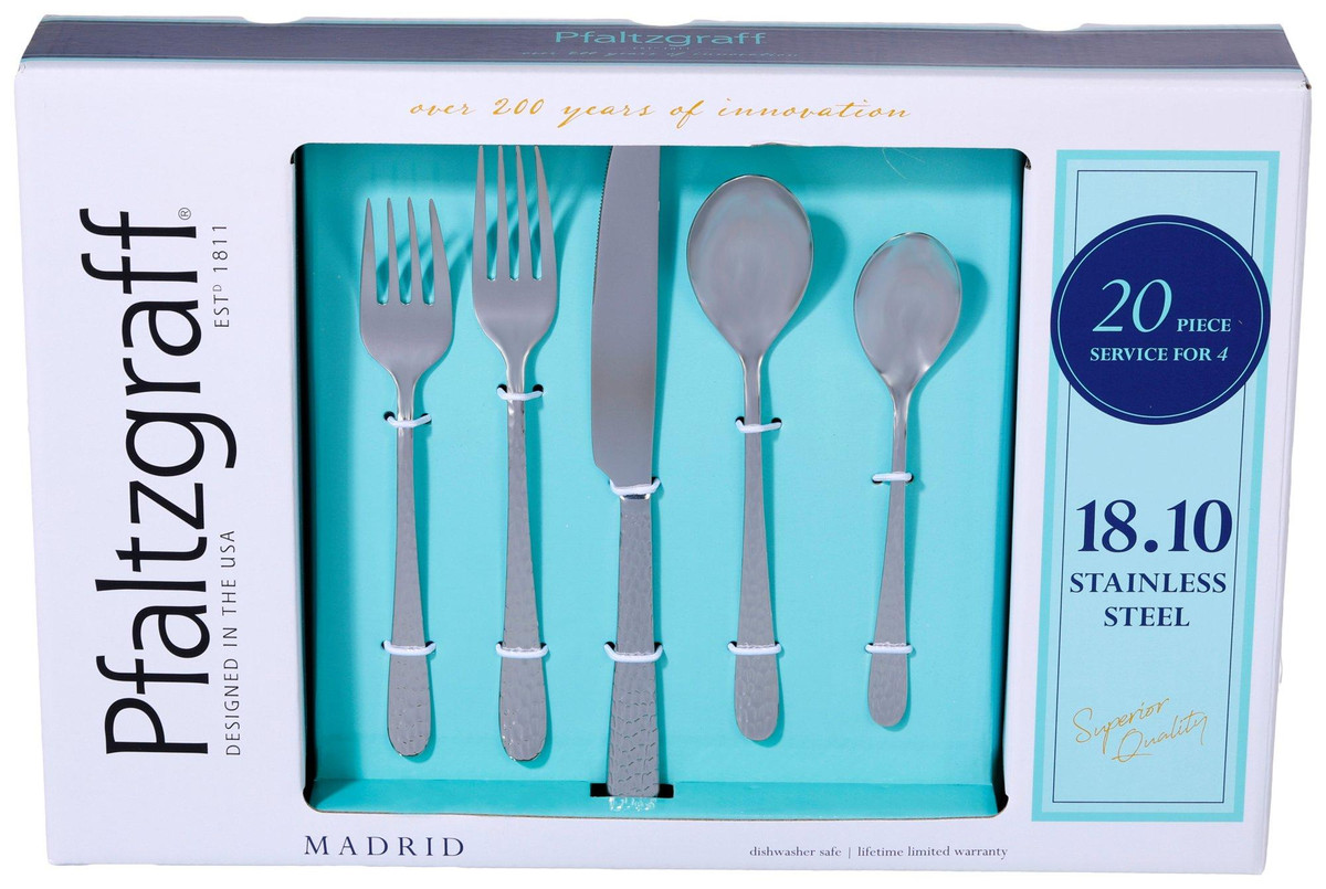 Complete your table in style with this 20 piece stainless steel flatware set, thoughtfully designed to serve 4. With salad forks, dinner forks, knives, dinner spoons, and teaspoons, each piece combines durability with a sleek finish for everyday use or entertaining. Dishwasher safe and backed by a lifetime warranty, its a dependable and elegant addition to any kitchen.