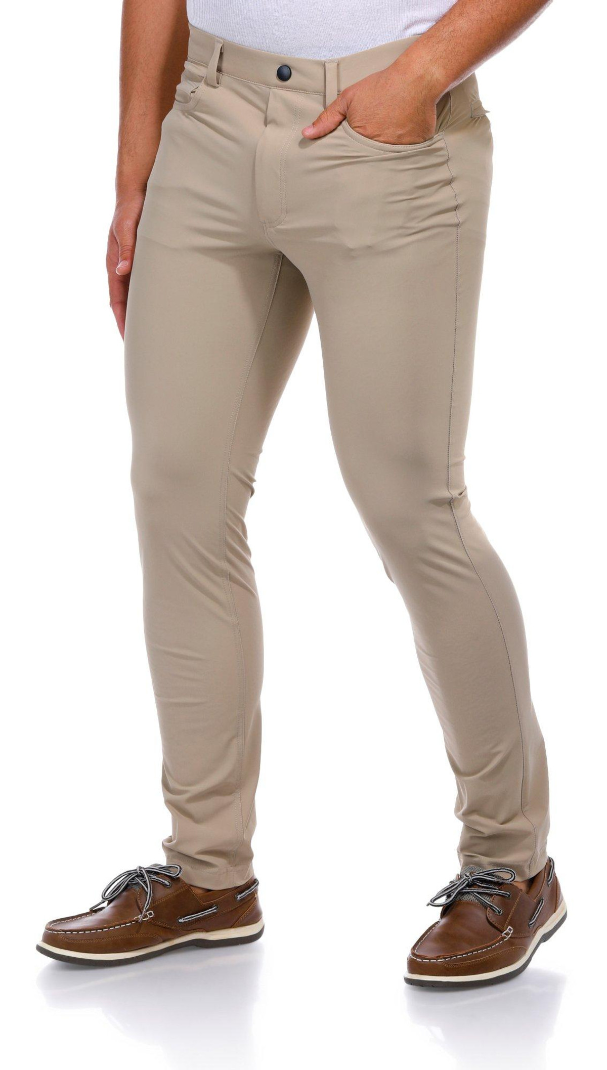 These 5-pocket performance pull-on pants are designed for comfort and active wear. Constructed from a stretch tricot blend, they offer an active waistband, moisture-wicking technology, and sun protection. The easy-care fabric ensures lasting durability and convenience. 76% Nylon, 24% Elastane