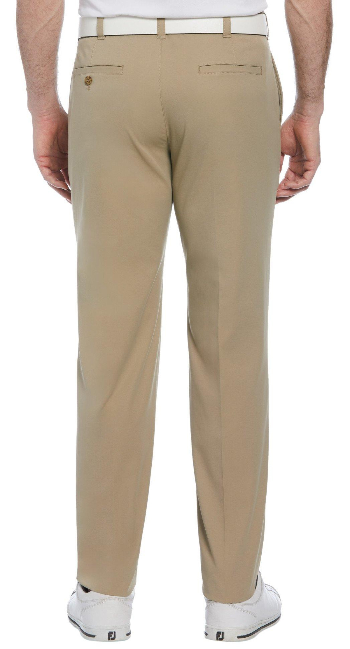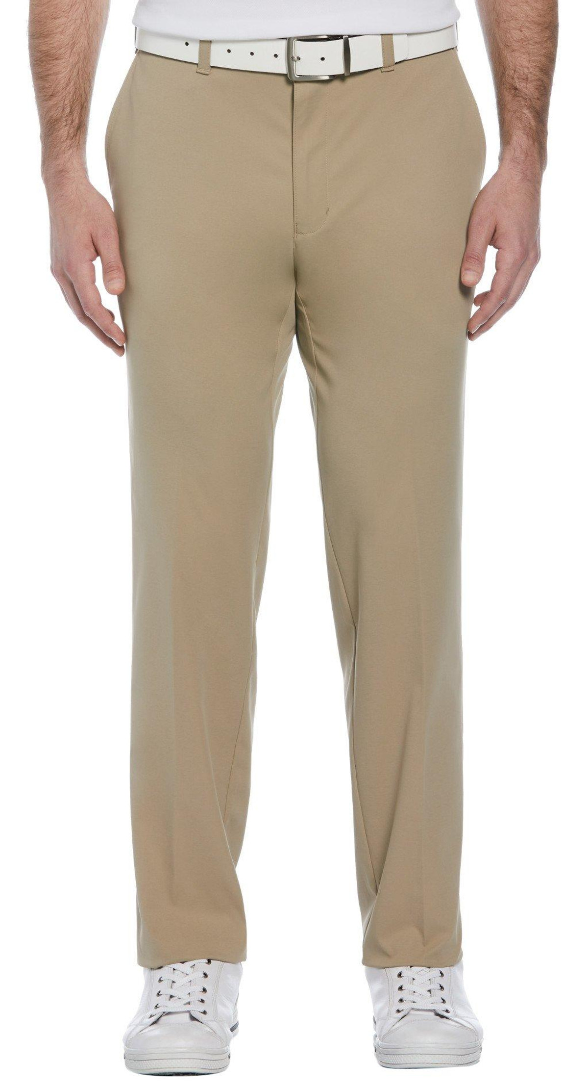Gear up for the golf course in these pants by PGA TOUR. Own the green in these flat front golf pants feature a casual 5-pocket styling, a classic solid design, an extender waistband, MotionFlux stretch fabric that moves with you, and DriFlux moisture wicking properties that keep you cool, dry, and comfortable all day.