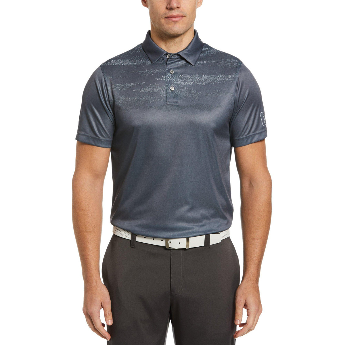 A unique textured print inspired by rugged terrain brings next-level style to this comfortable men’s golf shirt. Polo collar with button placket Stretch shoulder seams Imported Airflux ventilation Sun protection Wicking fabric helps evaporate moisturA unique textured print inspired by rugged terrain brings next-level style to this comfortable men’s golf shirt. Polo collar n Sun protection Wicking fabric helps evaporate moisture. Fabrication is 100% polyester.