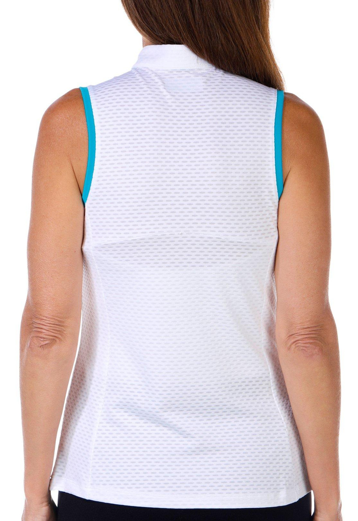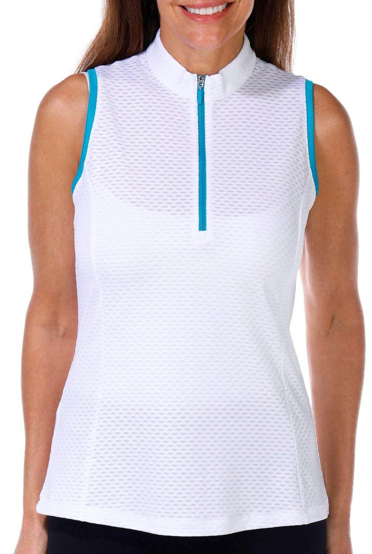 Stay cool and stylish in this Sleeveless Top, made with textured fabric and a sleek zipped neckline. Designed for performance with moisture wicking and sun protection, it is perfect for active days or outdoor adventures.