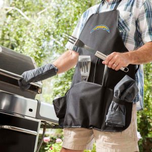 This 18-piece BBQ Tool Set features extra long wood and stainless steel handles with loops at the ends of their handles. Includes plastic case, a spatula, tongs, fork, knife, basting brush, 4 skewers, 8 corncob holders, and a grill brush with scraper. Measures 23” x 12” x 3”.