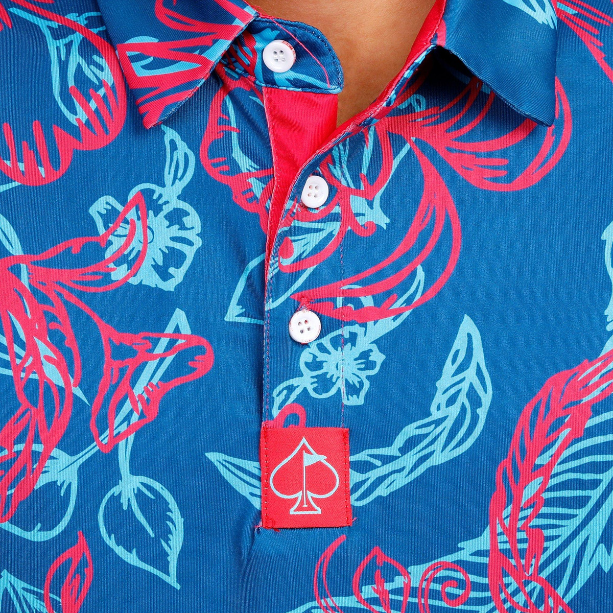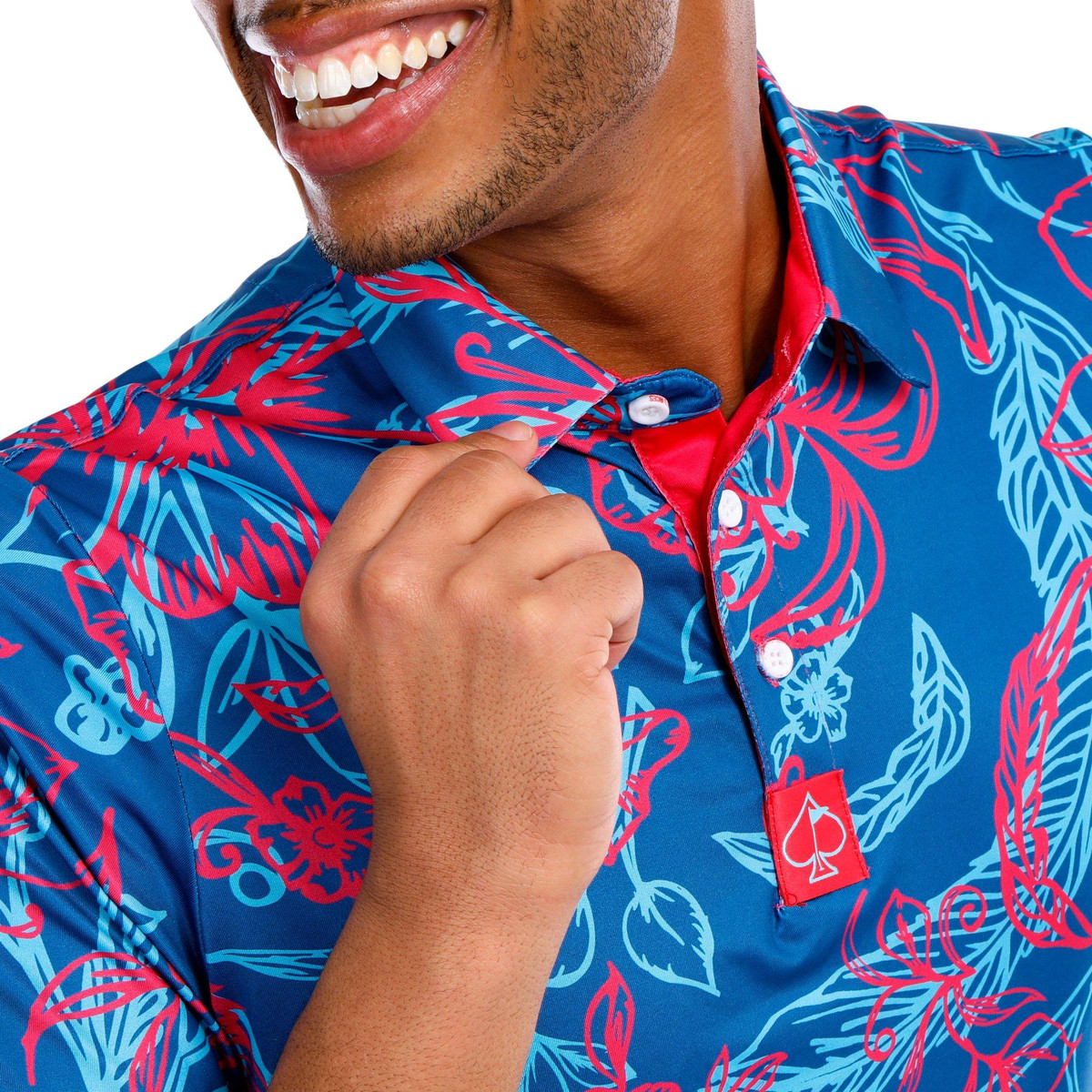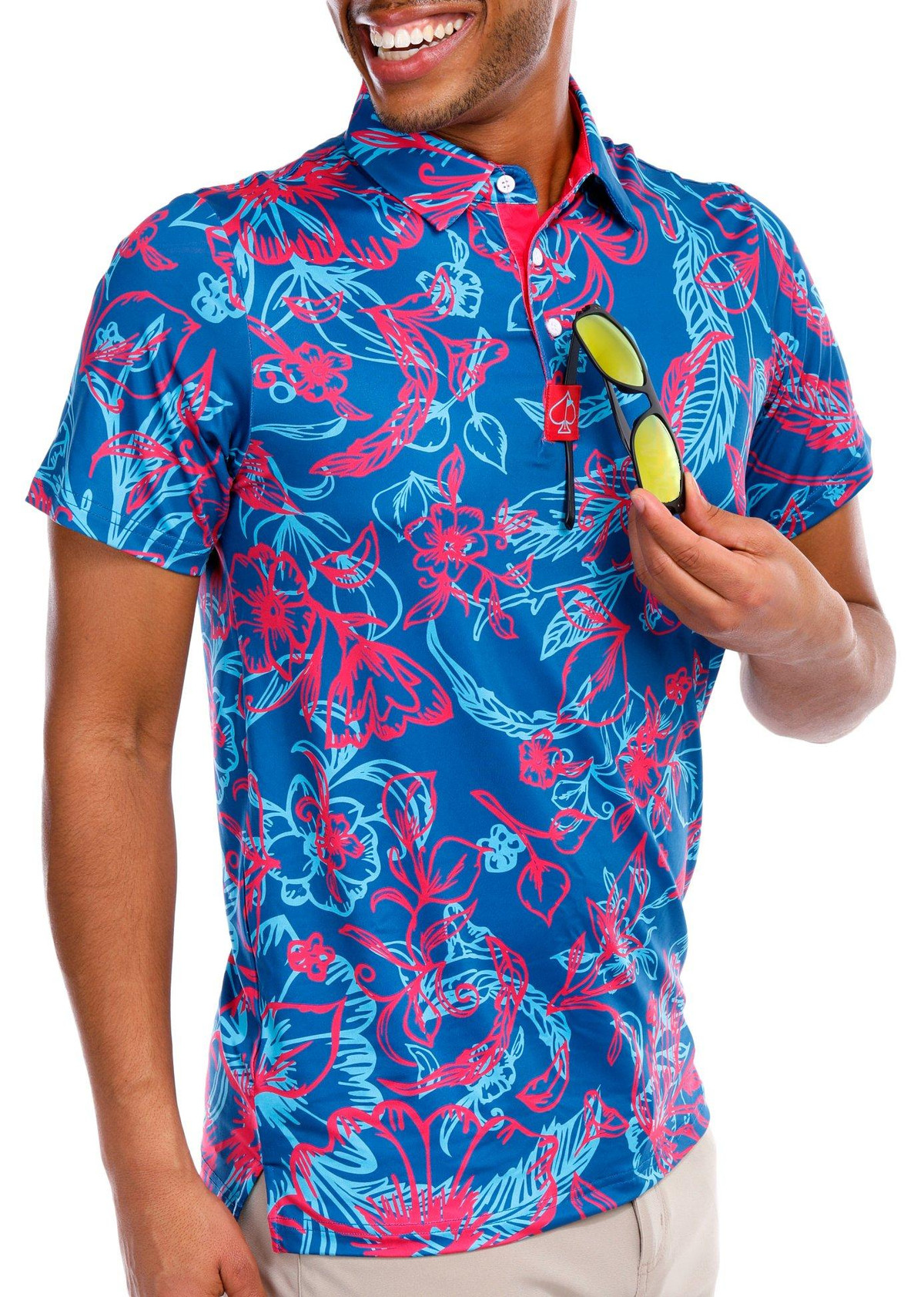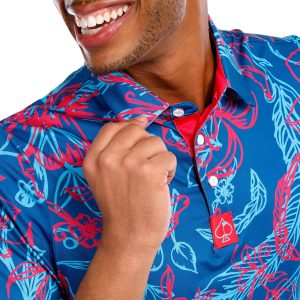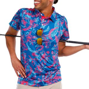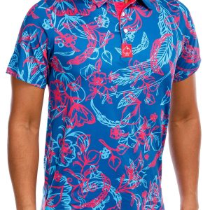 Elevate your game with this Men’s Golf Polo, designed for both style and performance. Featuring superior breathability and fast-wicking fabric, it keeps you cool and dry throughout your round. With SPF 45+ protection, wrinkle resistance, and an athletic fit, this polo is both practical and stylish. Plus, it includes a built-in sunglasses holder for added convenience. Perfect for the course or casual wear. Polyester blend fabric. 27 inches from shoulder.
