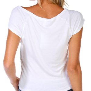 Add a touch of charm with this short sleeve white top from Planet Gold, featuring a flattering sweetheart neckline. Soft fabric offers all day comfort while the fitted silhouette enhances any casual or dressy look. Perfect for pairing with jeans or skirts, its versatile design makes it ideal for casual outings or special occasions. Measures approximately 10 in. Fabrication 95% nylon, 5% spandex.