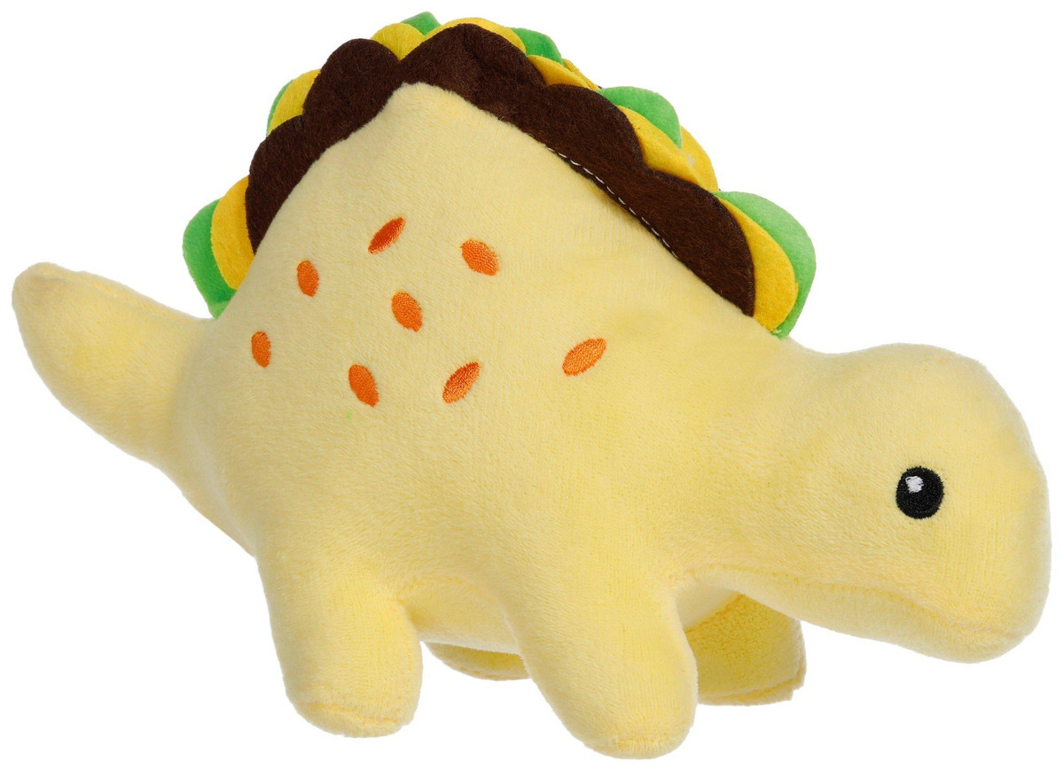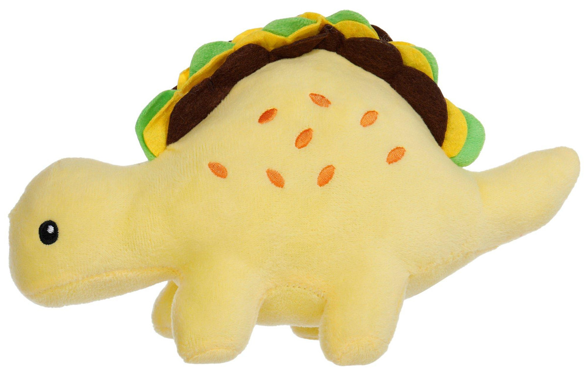 Spice up your pups playtime with the Plush Tacosaurus Dog Toy! This dino-delight features a fun taco-themed dinosaur design made from soft, cuddly fabric thats perfect for snuggling and gentle chewing. Complete with a built-in squeaker, it keeps your dog engaged and entertained with every chomp. Ideal for small to medium-sized dogs, the Tacosaurus combines playful charm and squeaky fun in one adorable package!