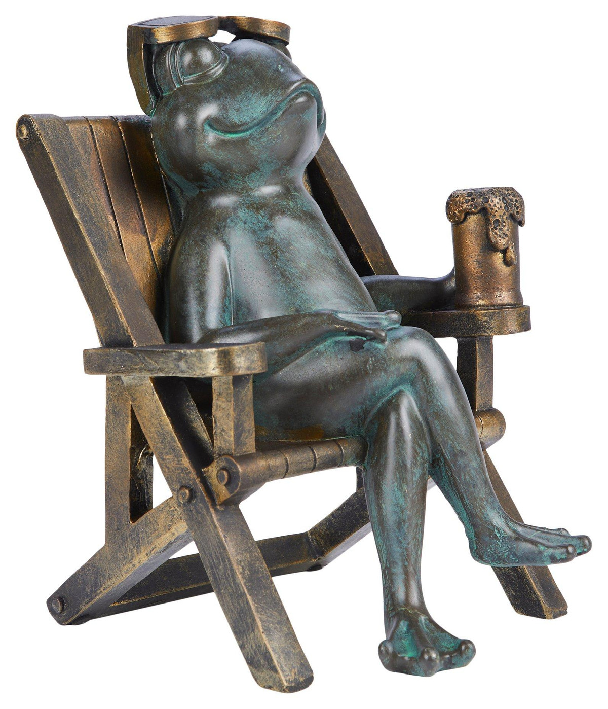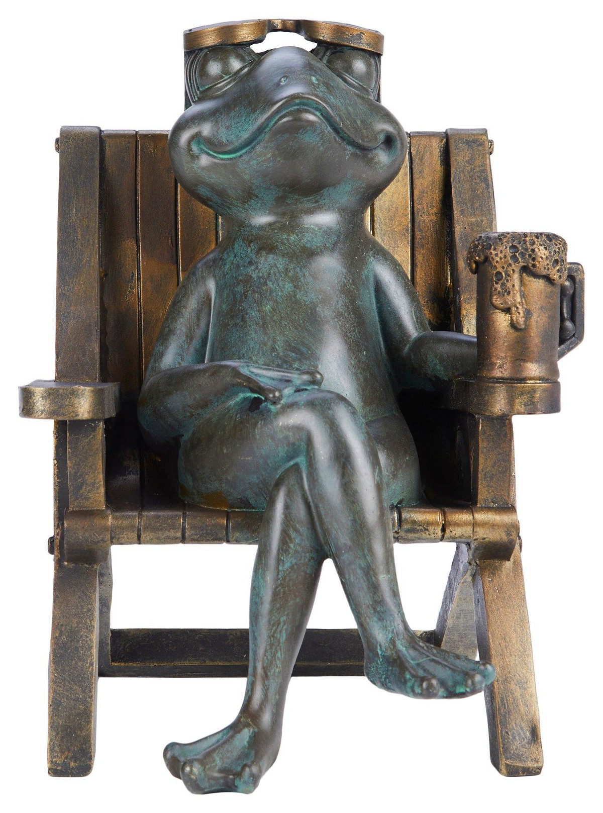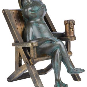 Enhance your outdoor space with this adorable Frog with a Drink Garden Statue. This charming piece features intricate detailing, with the frog lounging on a beach chair, created in durable resin. Perfect for gardens, patios, or walkways. It adds a touch of coastal charm to any setting. Weather-resistant and sturdy, this statue is designed to withstand the elements while maintaining its elegant appearance. Measures 14 in x 10 in x 10 in.