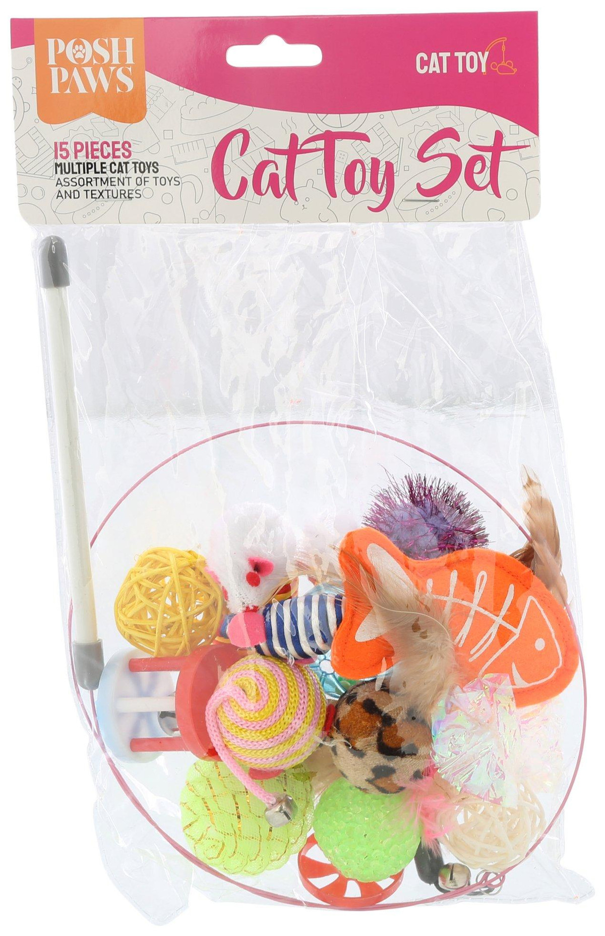 The 15-Piece Cat Toy Set offers a variety of fun and engaging toys for your feline friend.