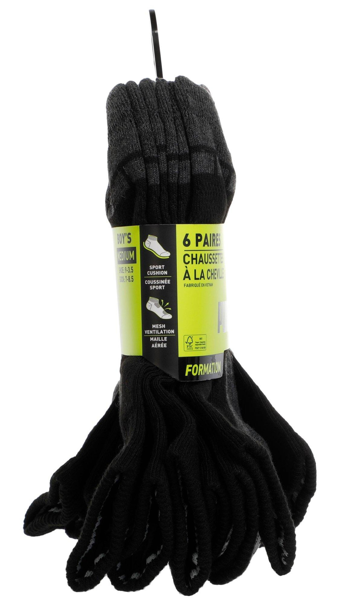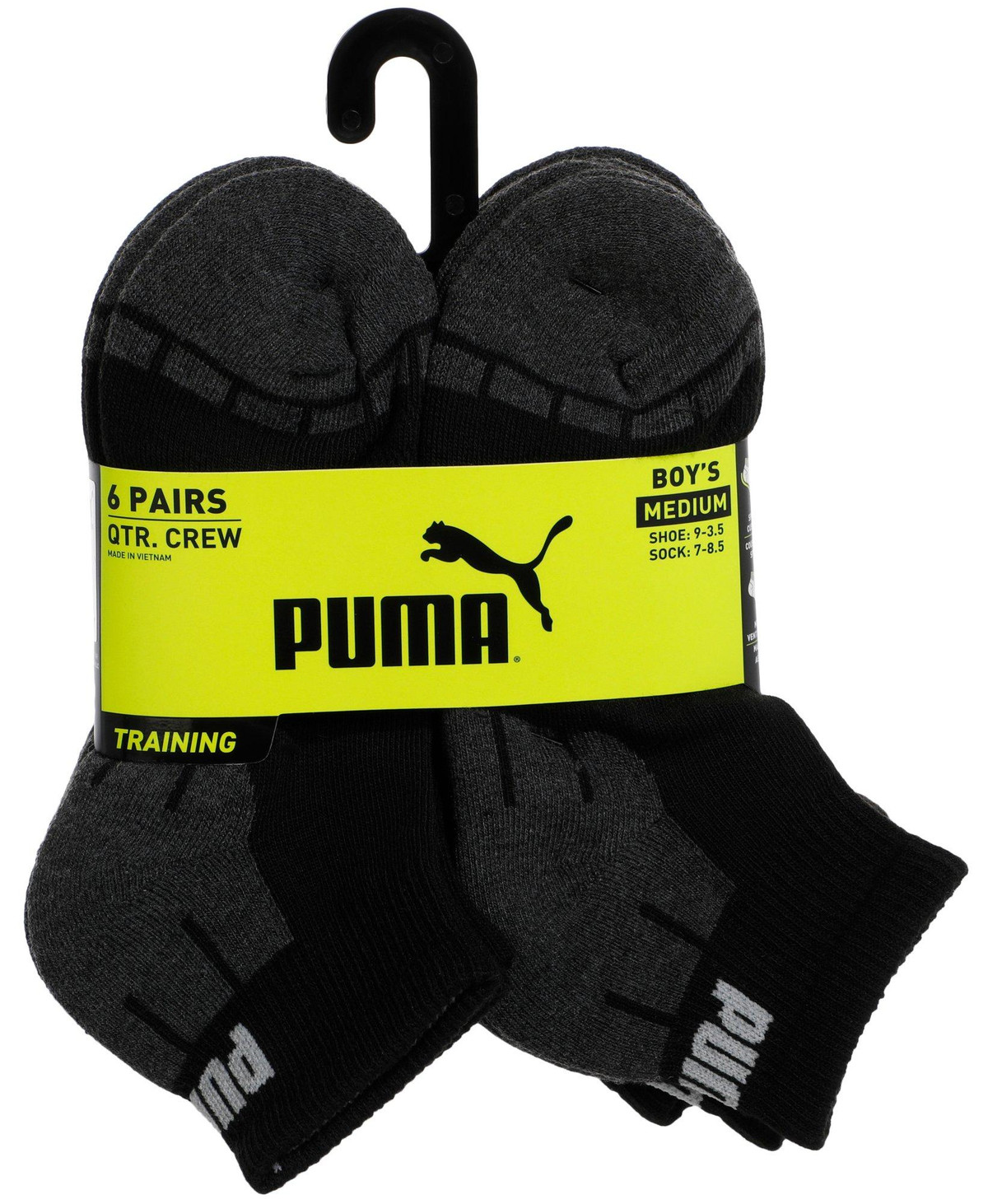Ensure your childs feet stay comfortable and supported with the 6 Pack of Boys High Quarter Crew Training Socks. Designed with sport cushion and arch support, these socks provide the perfect blend of comfort and functionality. The high quarter length offers extra coverage, while the durable fabric ensures long-lasting wear. Boys shoe sizes 9T-3.5Y.