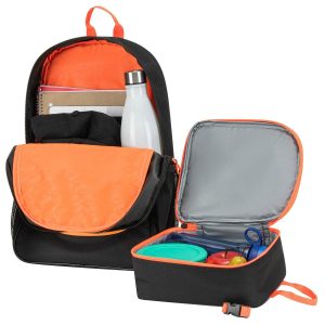Get ready for the school year with this backpack and lunch tote set! Featuring a spacious main backpack and matching lunch toteperfect for keeping all your school essentials organized. With 3 roomy pockets, a padded laptop sleeve, and a top handle for easy carrying, its designed for both function and style. Backpack measures 17 in. x 12.5 in. x 6 in. Luch tote measures: 9 in.L x 6in.W x 3in.H