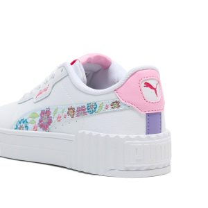 Bring out their colorful side in the Carina 3.0 Flower Power sneaker from Puma. The bright floral detailing catches the eye, while SoftFoam+ cushioning provides soft support underfoot to round out this style. Features synthetic upper, lace-up closure, round perforated toe, padded collar, mesh fabric lining and rubber sole.