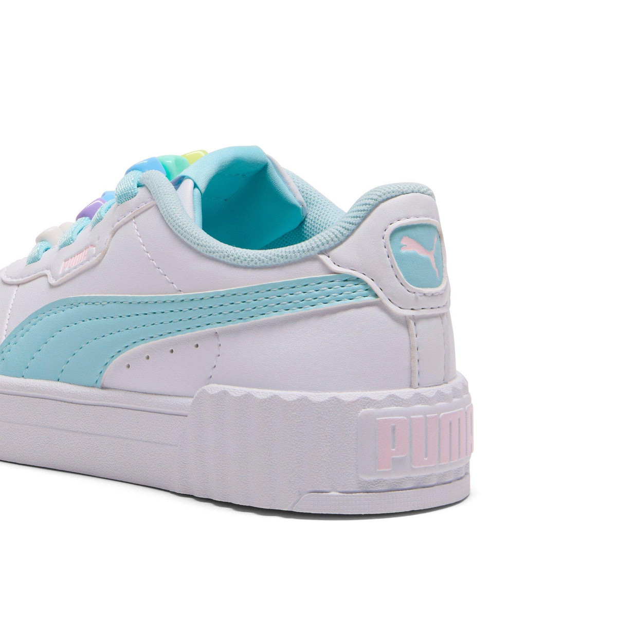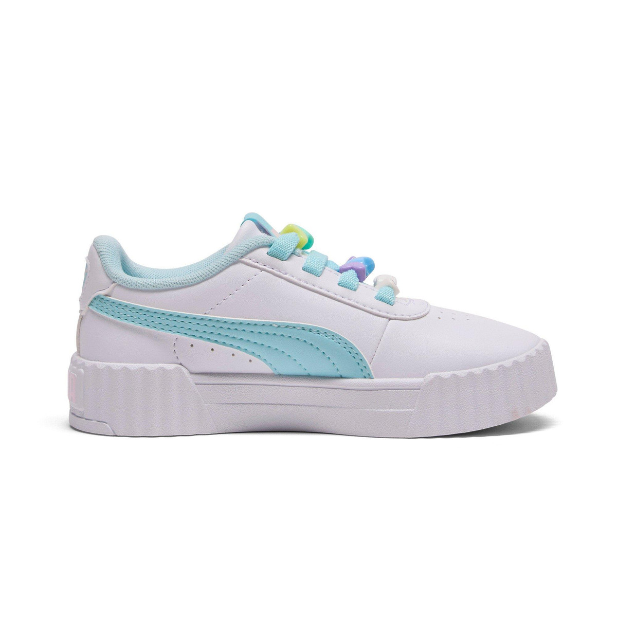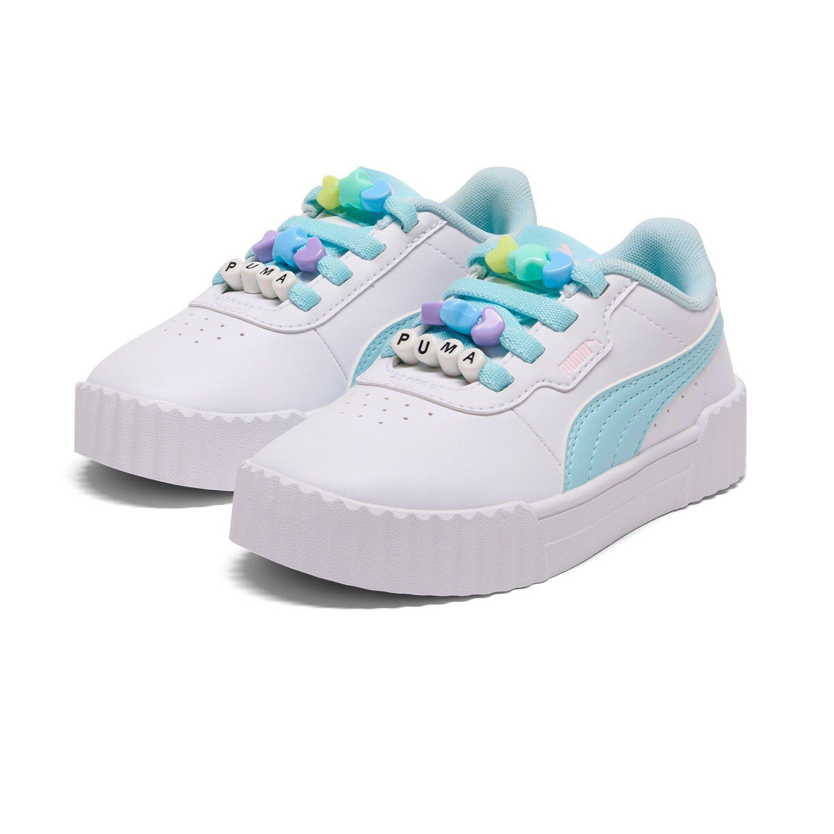 Celebrate the summer with the new Carina 3.0 Friendship Bracelet Athletic Shoe from PUMA! The Carina 3.0 Friendship Bracelet Sneaker showcases a retro silhouette made with smooth faux leather uppers, breathable mesh lining, elastic laces with cute charm details, and chunky rubber outsoles for traction. Features elasticized lace closure with friendship bracelet charms and smooth synthetic leather upper with breathable mesh lining.