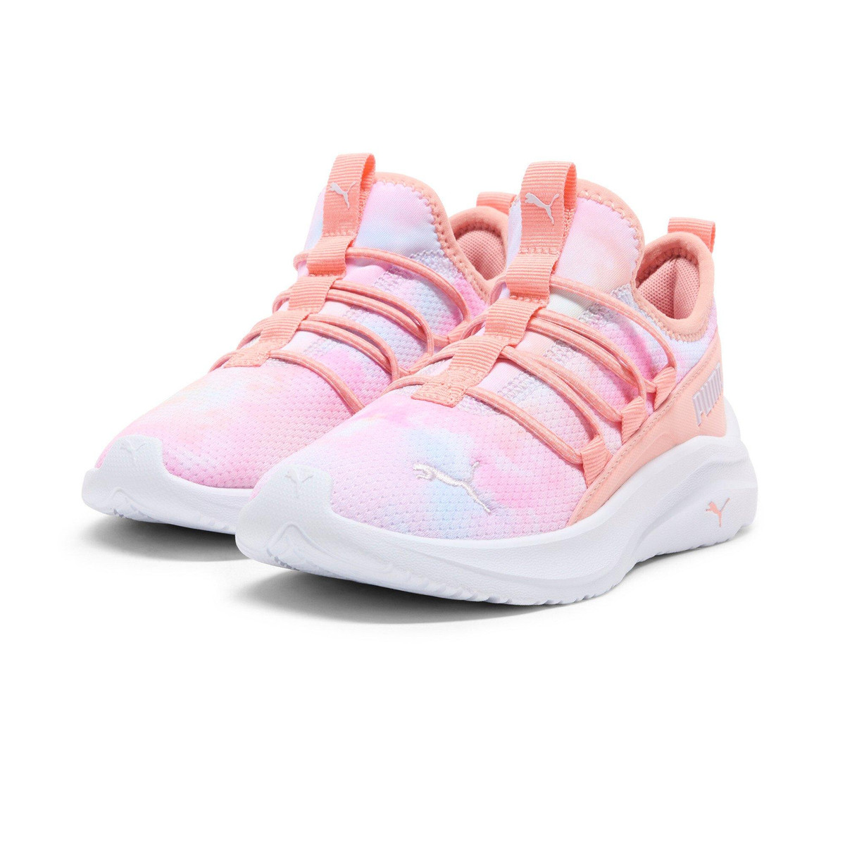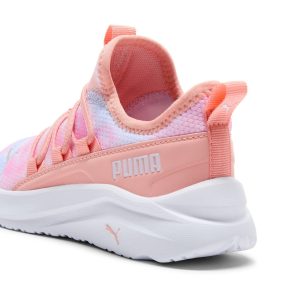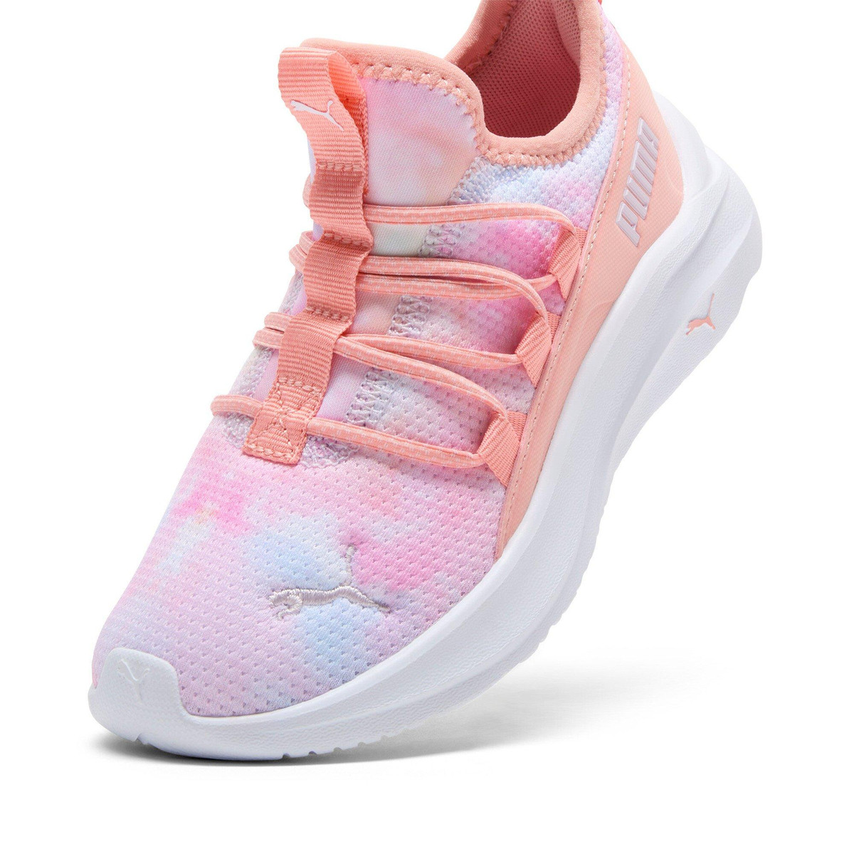 Discover the Puma One4All Painted Clouds slip-on sneaker, a stylish pair that features a comfortable textile upper, elastic laces for easy wear, and a cushioned footbed. Perfect for active little ones, they combine bold design with everyday comfort.