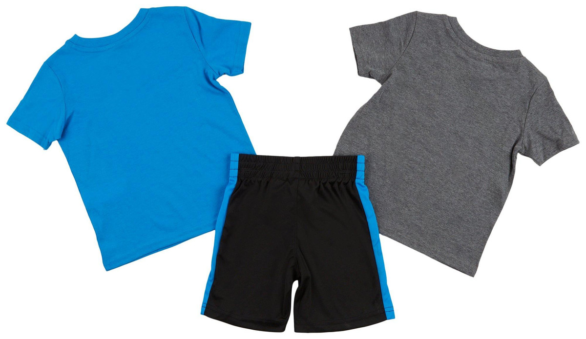 This 3 piece set offers versatility and comfort with two soft tees and a pair of active shorts. Perfect for mixing and matching, the tees are soft and breathable, while the active shorts provide the flexibility needed for endless play.