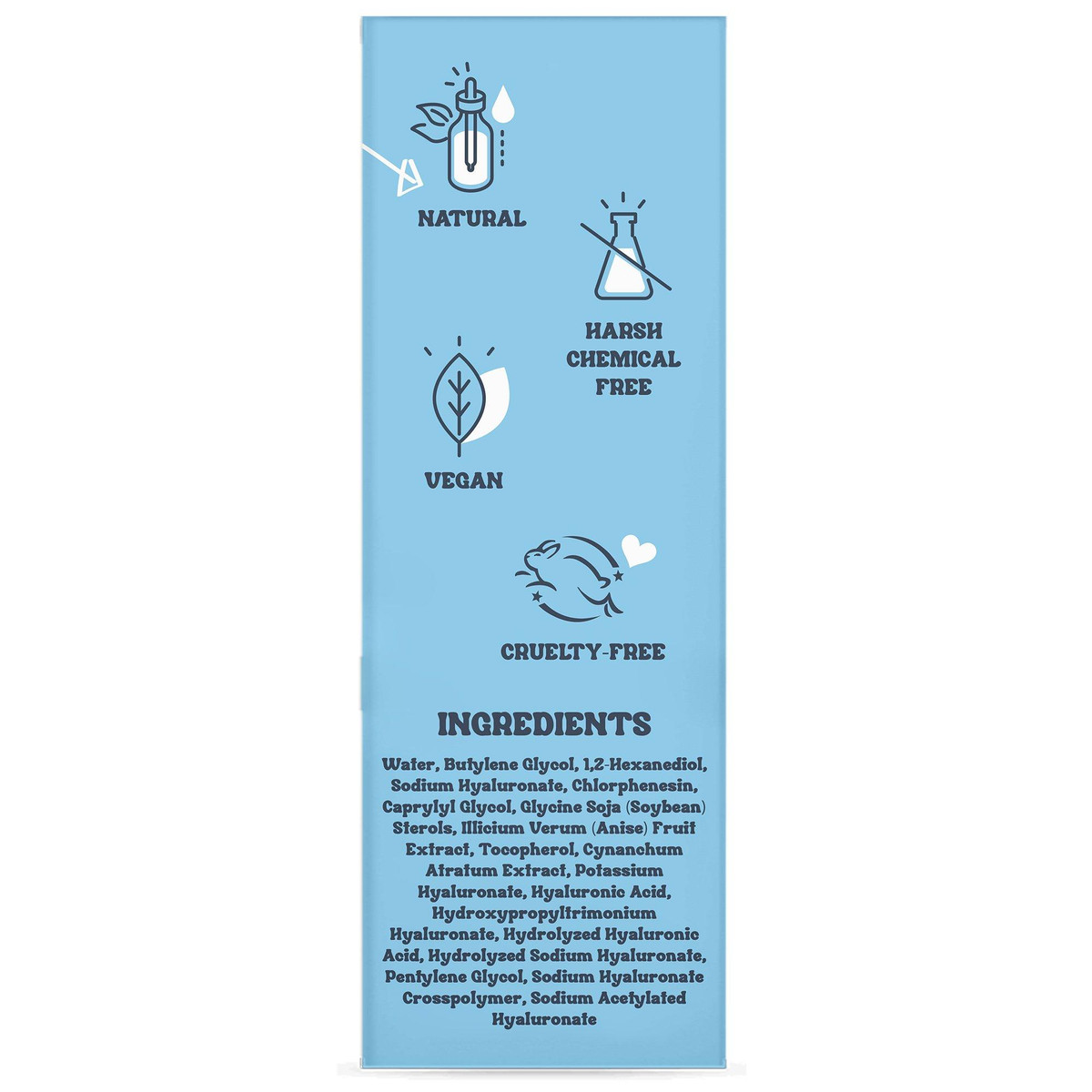 This Serum is 97% refreshing natural blend of Hyaluronic Acid and vitamin E intensely moisturizes and hydrates quenched skin, leaving your skin supple and glowing. It also helps protect and balance skins texture to achieve long-lasting hydration.