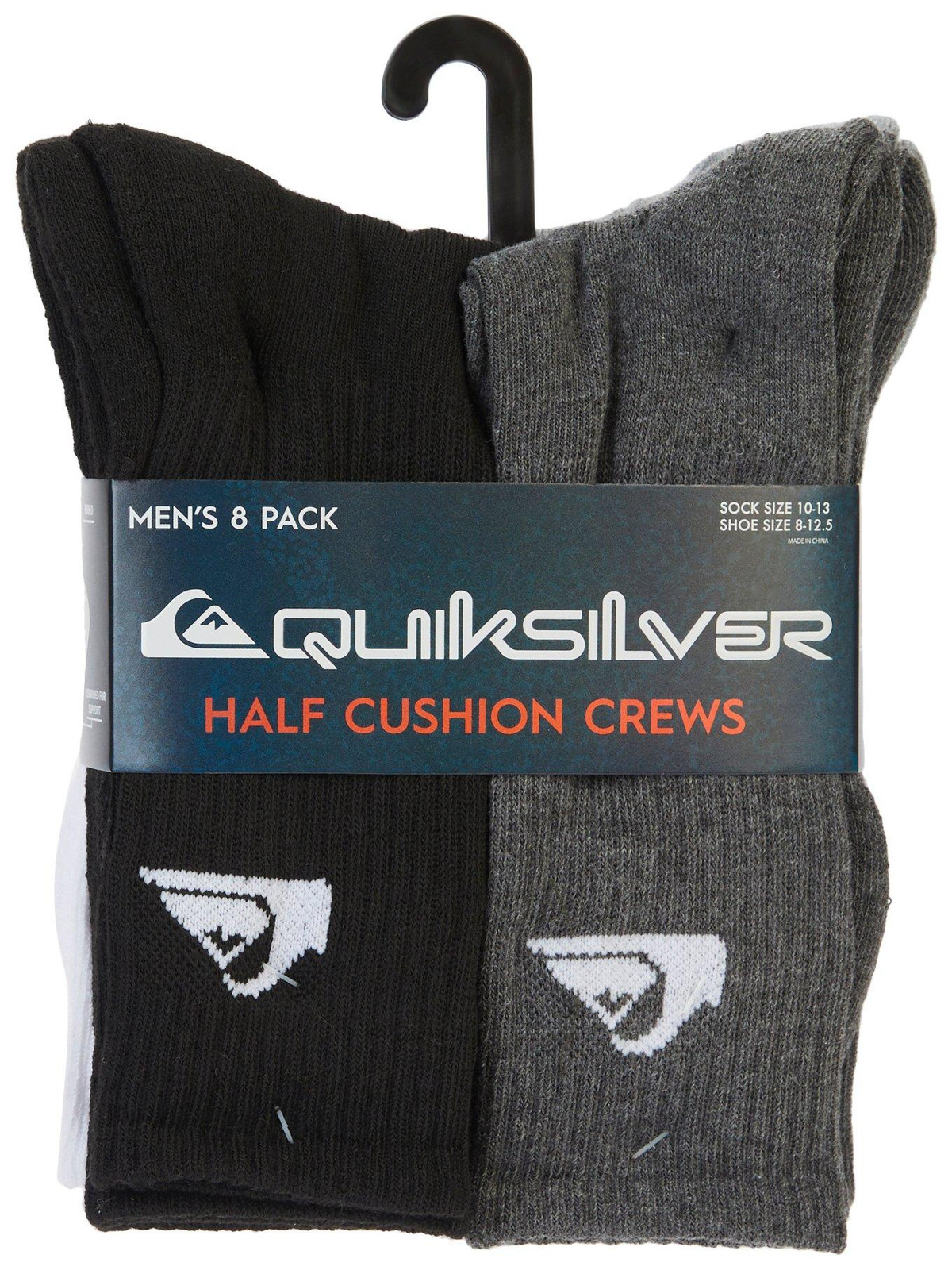 No shortcuts, no compromisesjust socks that keep up. The Quiksilver Mens Half Cushion Crew Socks 8-Pack fits shoe sizes 812.5 and delivers all-day comfort with a breathable polyester-spandex blend. Moisture-wicking, reinforced heel and toe, and just the right cushionthese socks are built to last. Eight pairs, zero excuses.