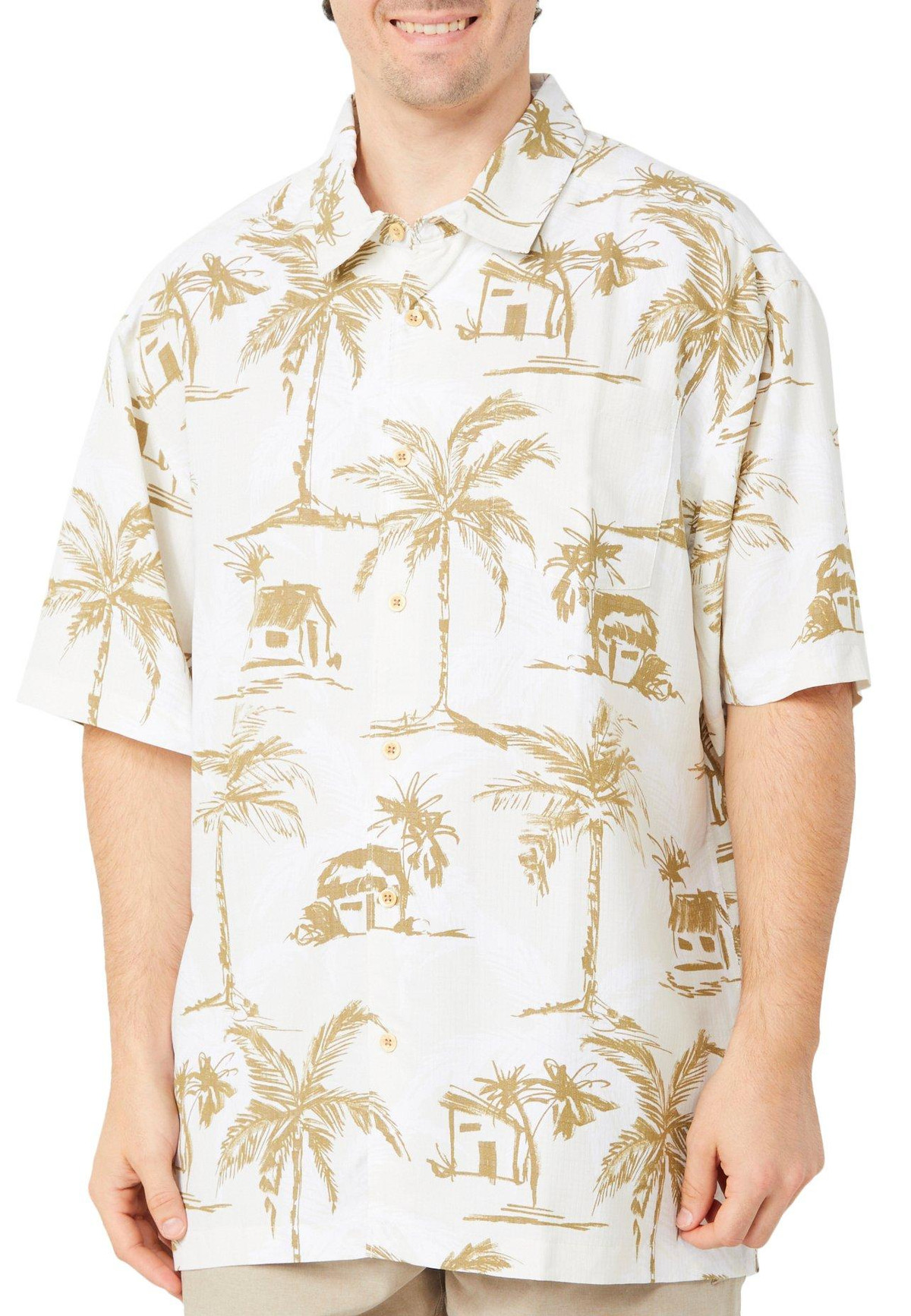 This men’s polo is made from sustainable materials and features soft fabric that is gentle on skin, a chest pocket, and an allover tropical print. Designed for comfort with eco conscious style. Fabrication is 87% modal and 13% polyester.