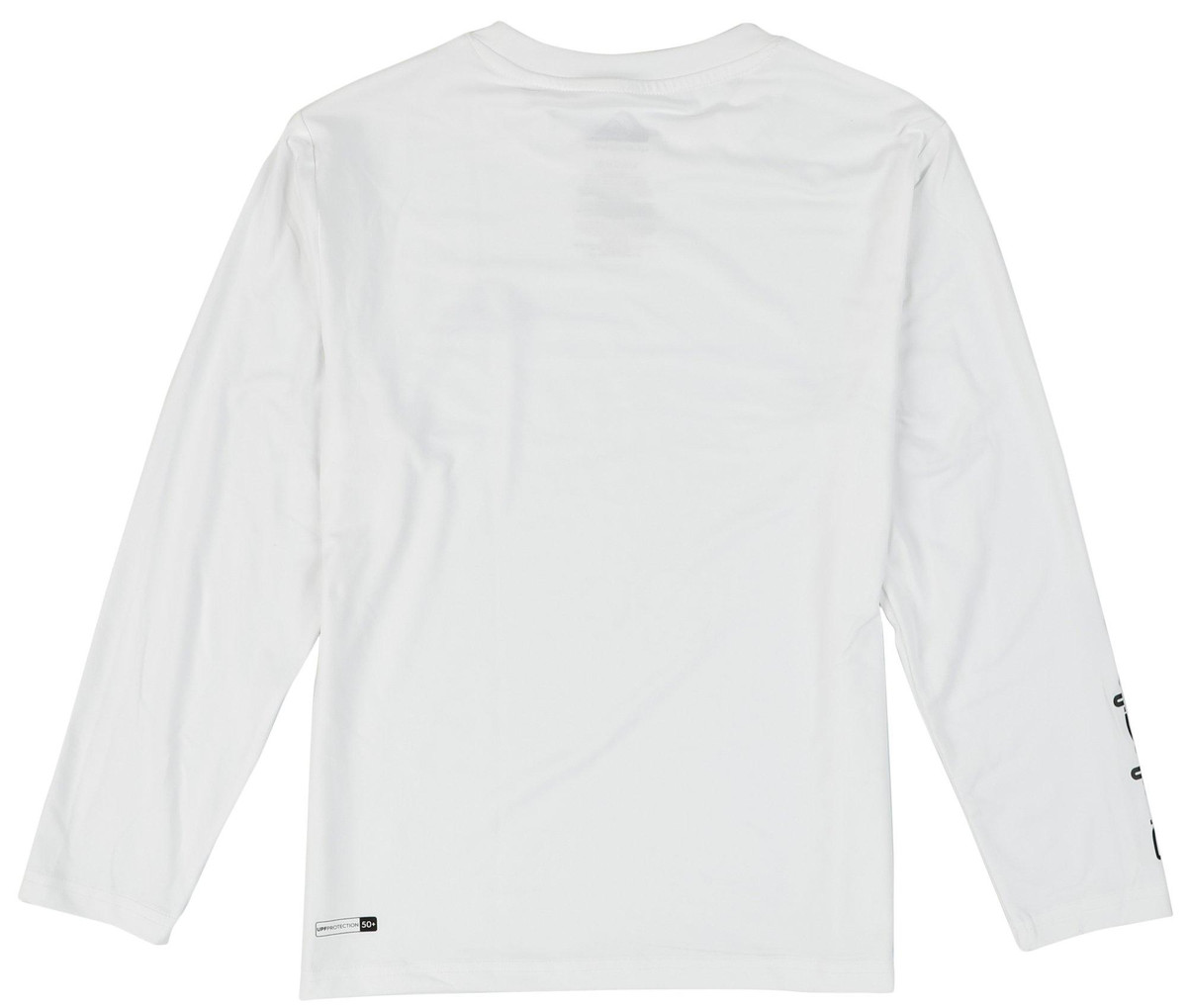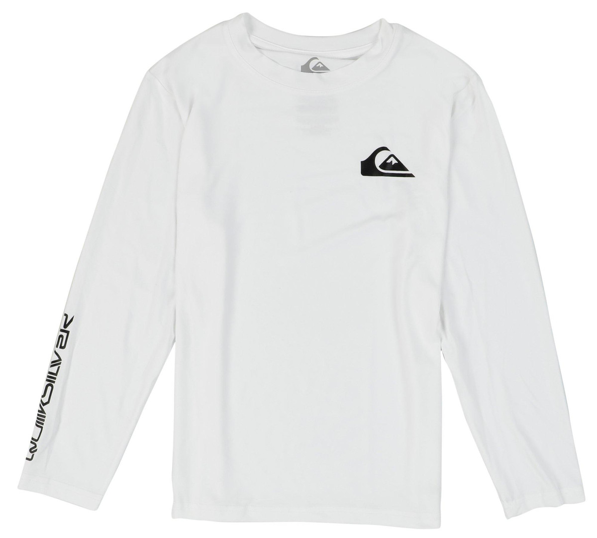 Keep your little one protected and stylish with the Big Boys Long Sleeve Logo Rash Guard. Featuring a bold logo script on the sleeve and chest, a classic crew neckline, and short sleeves, it offers UPF 50+ sun protection and performance stretch for all day comfort in and out of the water. Fabrication is 92% polyester and 8% elastane.