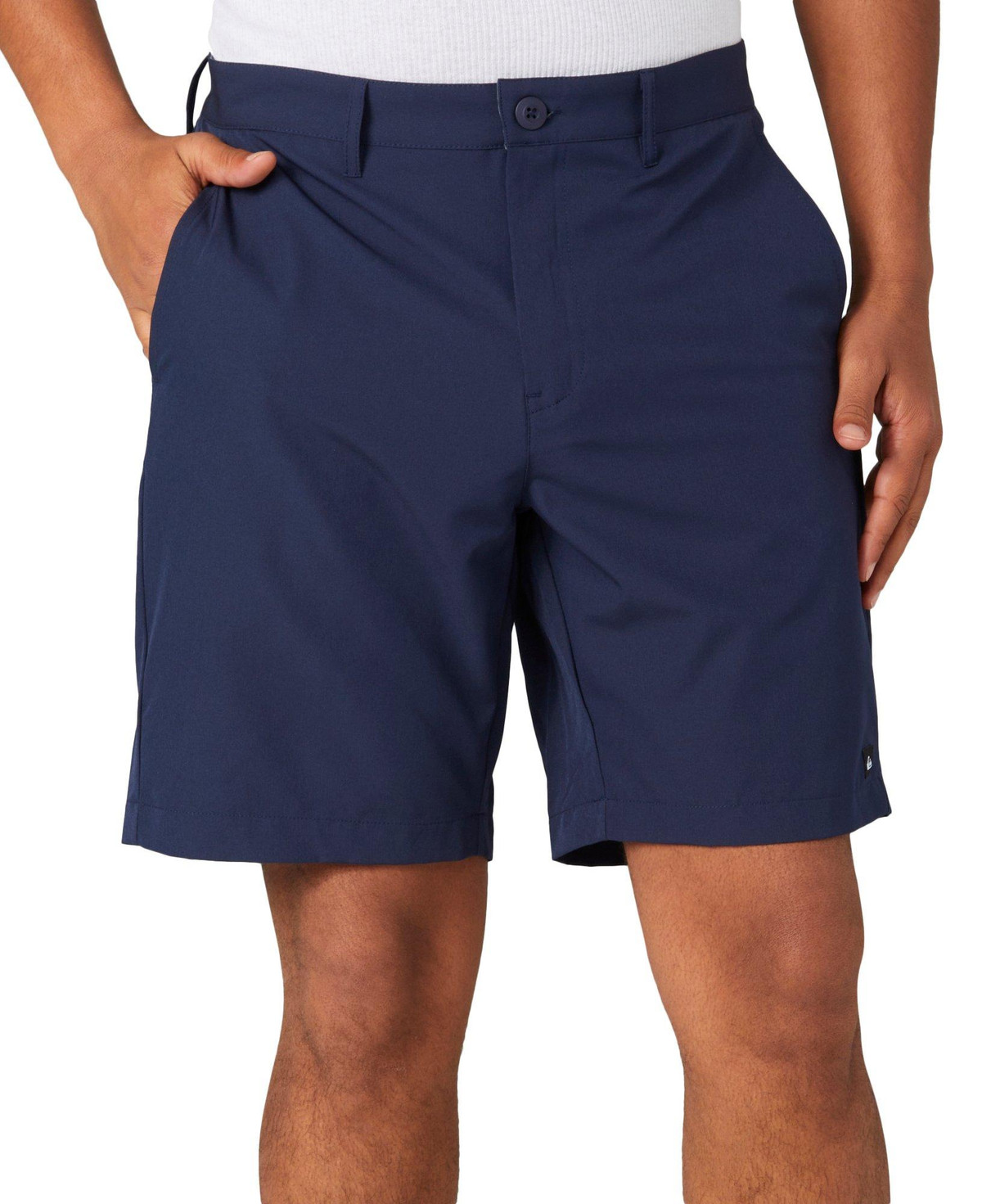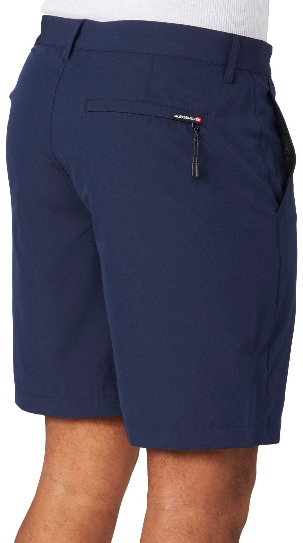 These union amphibian surf shorts feature anti-rash free stretch fabric, solid color design for easy matching, one button thru back pocket, one zip closure back pocket, hyper dry fast drying time, button-fly and zip closure, and regular fit. Outseam measures approximately 21 inches above the knee. Fabrication is 92% polyester, 8% elastane.
