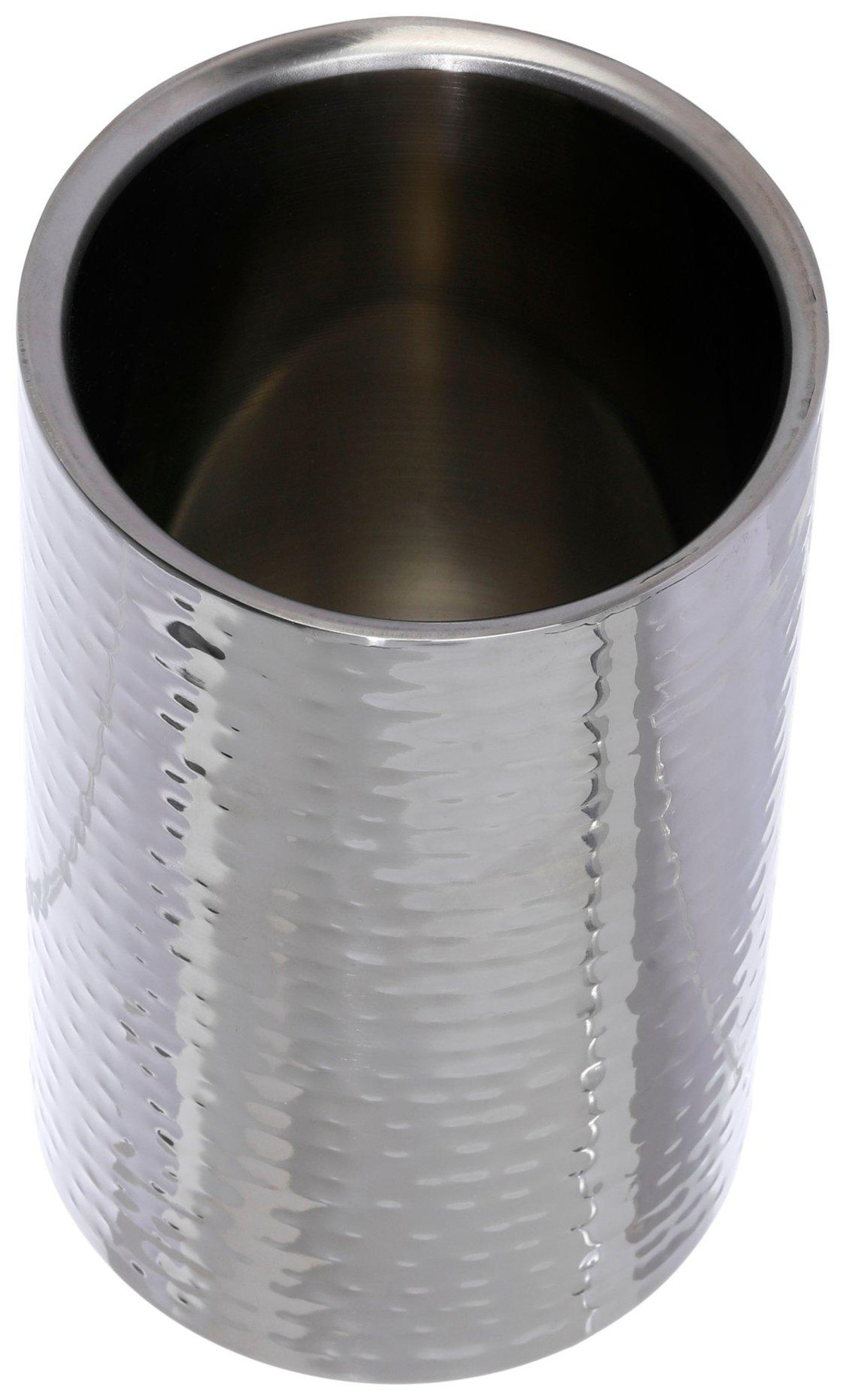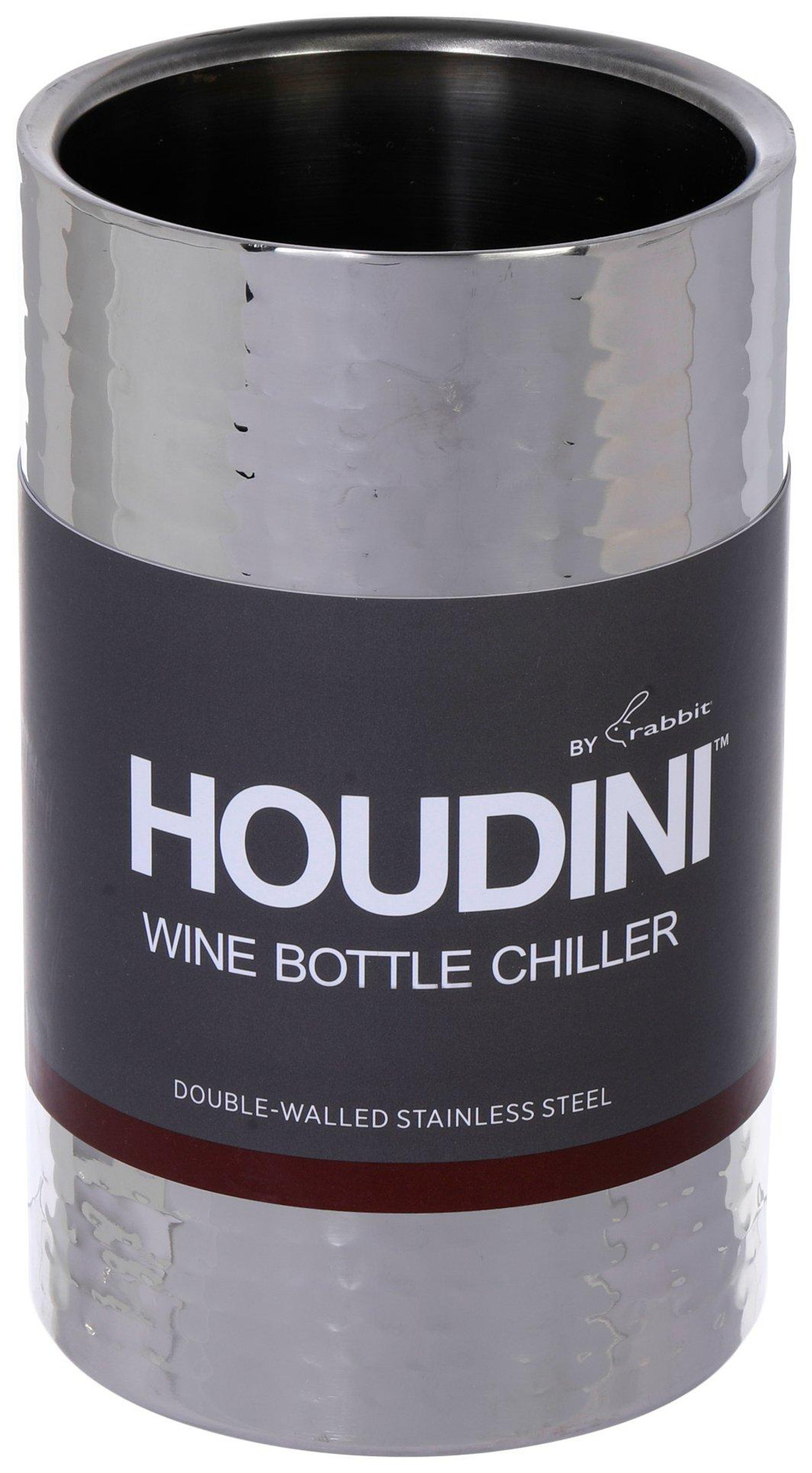 Keep wine perfectly chilled with the 750 ml Houdini Wine Bottle Chiller. Made from hammered stainless steel with a double-walled design, it maintains temperature while adding a touch of modern elegance. Sized to fit most standard wine bottles, its ideal for dinner parties, outdoor gatherings or quiet nights in. Hand wash recommended. Fabrication is 100% stainless steel.