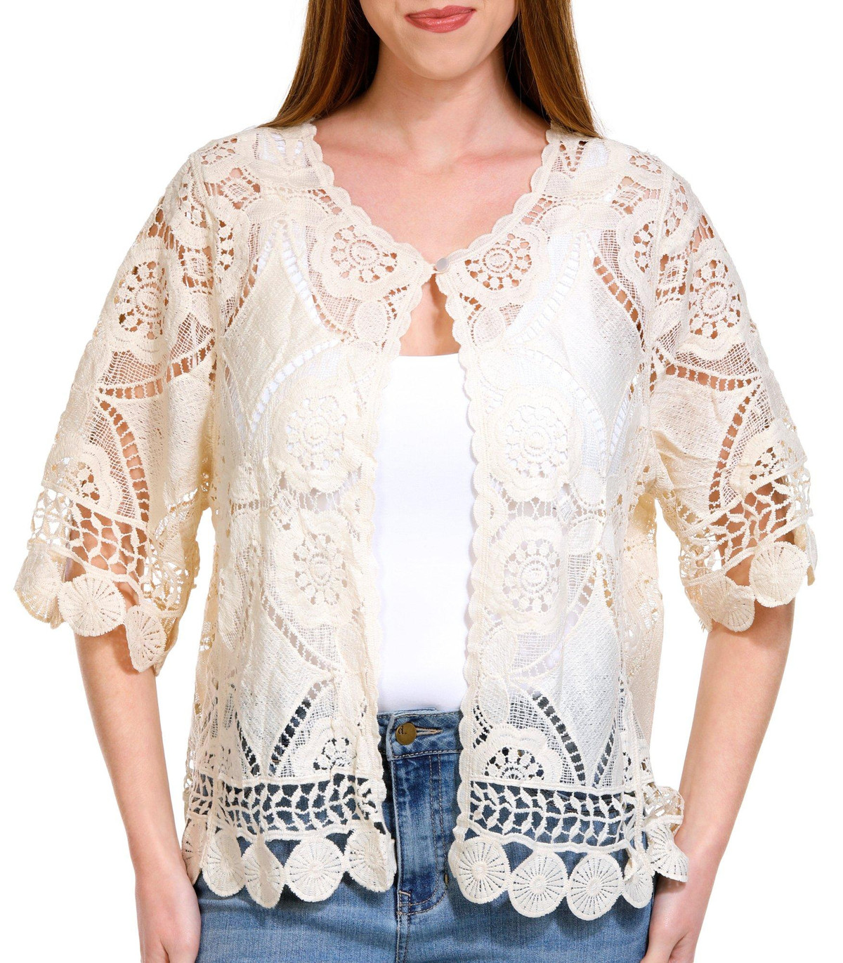 Introducing the Women’s Crochet Shrug, crafted from 100% polyester for a lightweight and comfortable fit. This elegant shrug features an intricate crochet design, an open front, and short sleeves. With a length of 22 inches, it’s perfect for layering over your favorite outfits, adding a touch of sophistication and charm to your look.