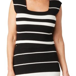 Embrace effortless style with the Knit Sleeveless Top. Featuring a chic striped pattern, this top is perfect for warm weather and layering. The soft, breathable knit fabric ensures comfort throughout the day, while the sleeveless design offers a modern, relaxed fit. Pair it with your favorite jeans, skirts, or shorts for a versatile look that transitions seamlessly from casual outings to more polished occasions. Fabrication is 78% rayon, 22% polyester.