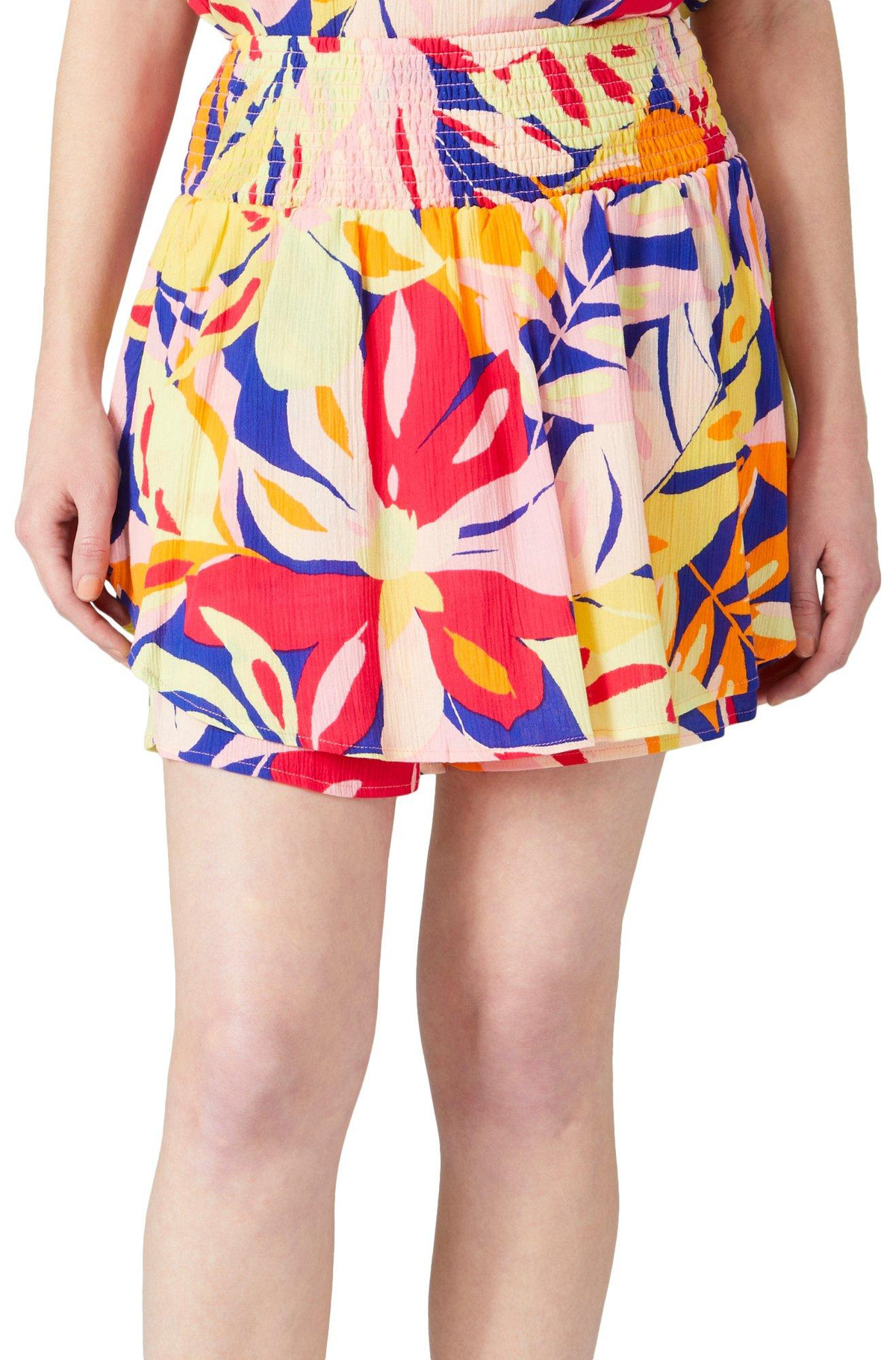 Introducing the Petite Gauze Abstract Print Skort, crafted from 100% cotton for ultimate comfort. This stylish skort features a vibrant multicolored print, a smocked pull-on waistband for easy wear, and built-in shorts for added convenience. With a 16-inch length, it offers a perfect blend of fashion and functionality, making it an ideal choice for any casual outing.