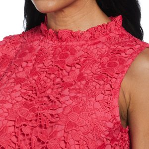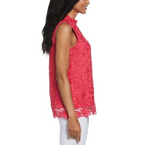 Crafted from lace fabric and featuring a high neckline with ruffle trim and a scalloped hemline, this lace top has an elegant look. Made for comfort as much as style, this women’s sleeveless top includes a stretchy lining for flexibility and easy wear.