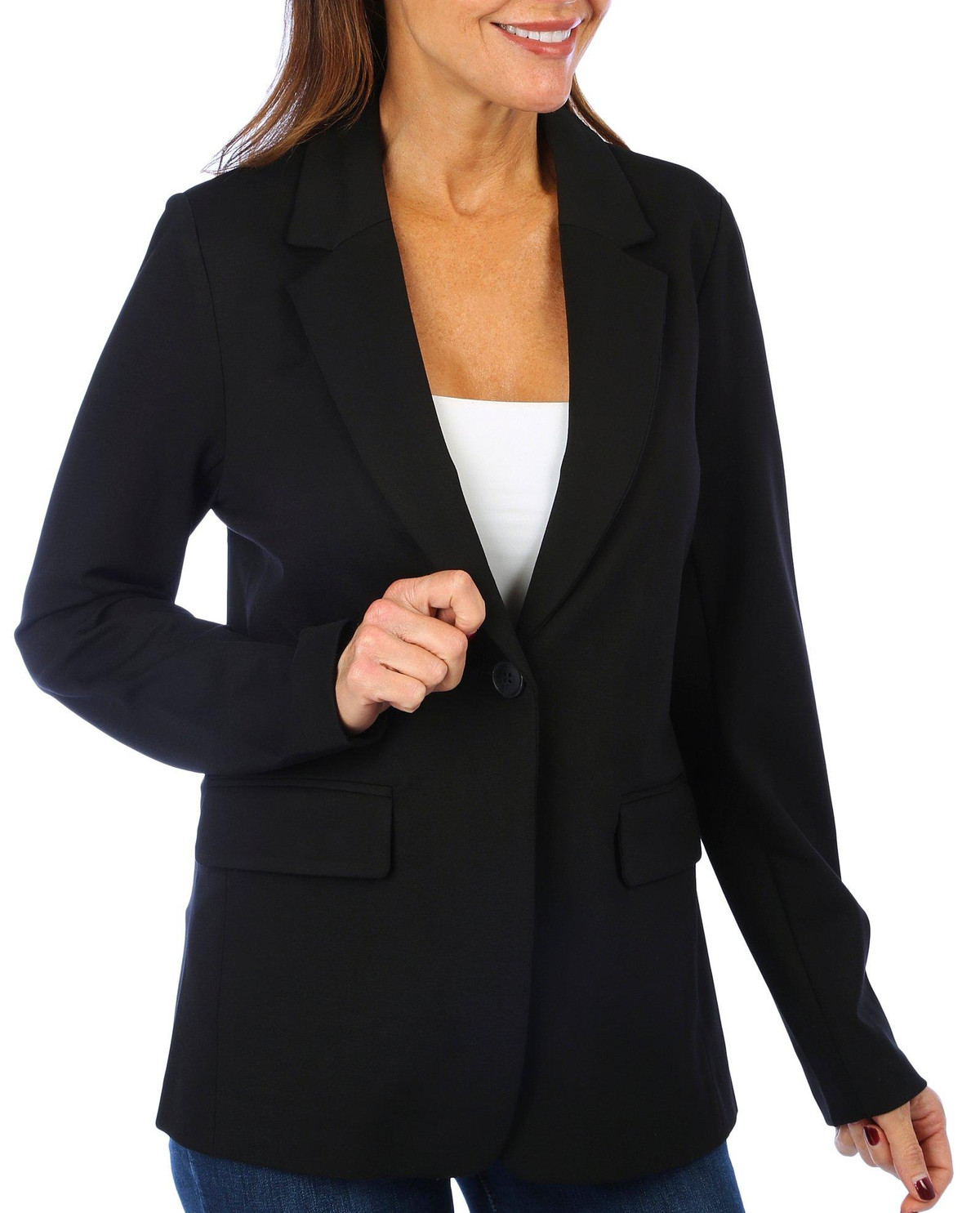 This women’s ponte blazer is a perfect blend of sophistication and comfort. Featuring a solid color and a single button closure, it offers a sleek and polished look. With a 27-inch top length, it provides a flattering fit. Crafted from a blend of 60% viscose, 35% polyester, and 5% elastane, this blazer ensures both durability and stretch, making it ideal for both professional and casual settings.