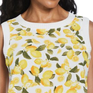 The Women’s Sleeveless Lemon Knit Top is a perfect blend of comfort and style. Made from soft, breathable knit fabric, it features a vibrant lemon print that adds a touch of freshness to your wardrobe. The sleeveless design keeps you cool, while the relaxed fit offers all-day comfort. Ideal for warm-weather outings or layering with your favorite accessories.