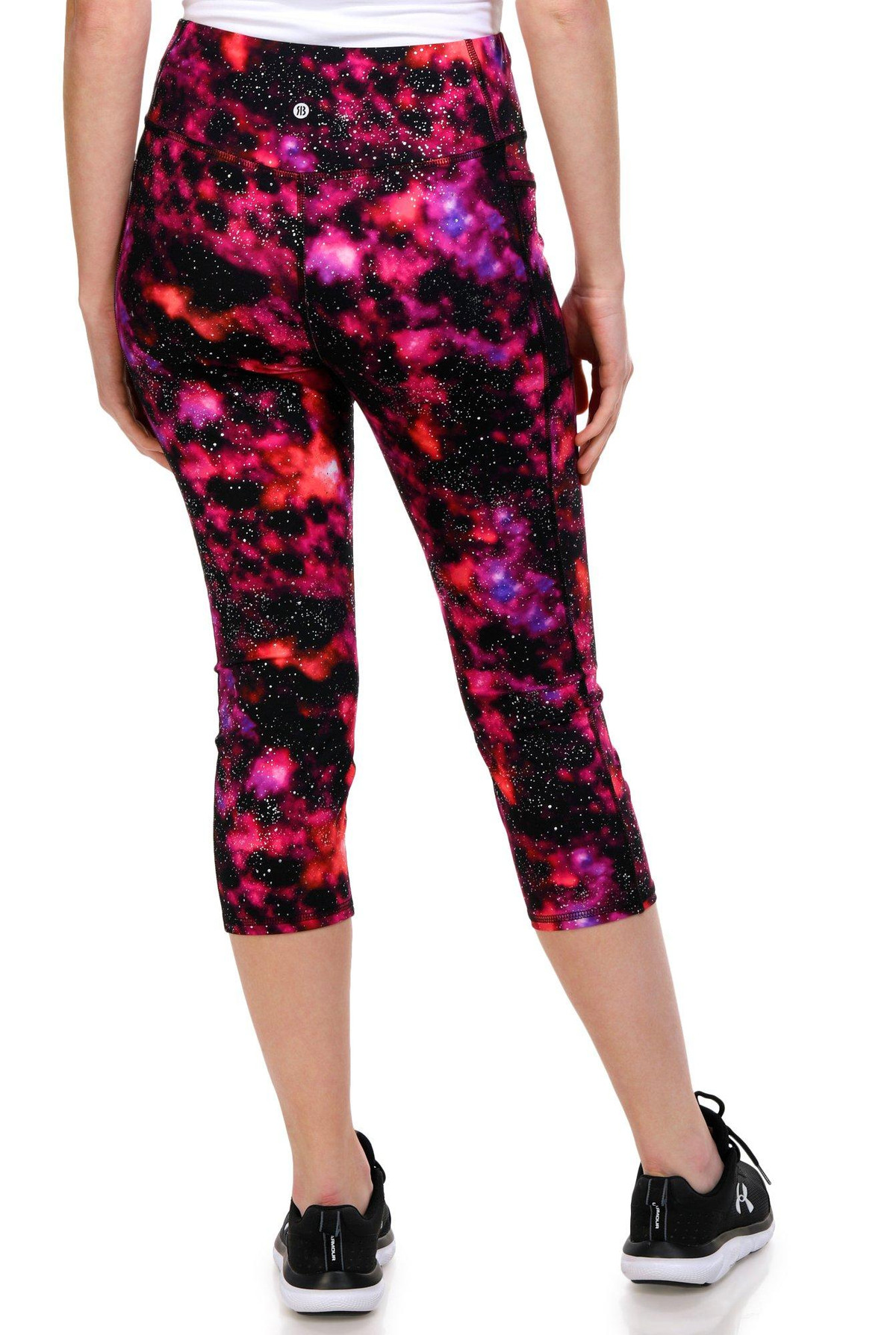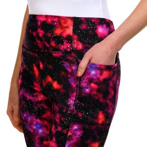 Stay active in style with our Women’s 20-inch Galaxy Cloud Pocket Capri Leggings. Made from a blend of nylon and spandex, these leggings feature a stunning galaxy cloud print and convenient side pockets. Designed for performance, they offer UPF 50+ protection, moisture-wicking capabilities, and cooling features. The stretch fabric ensures a comfortable fit, making these capri leggings perfect for any workout or casual wear.