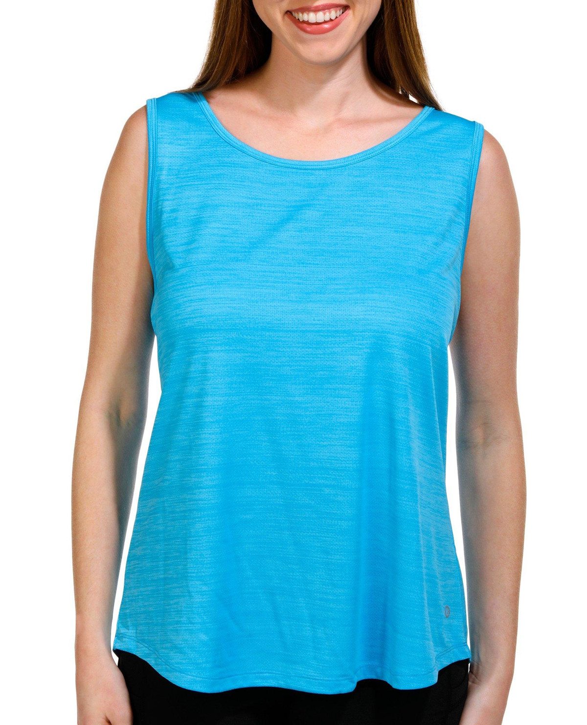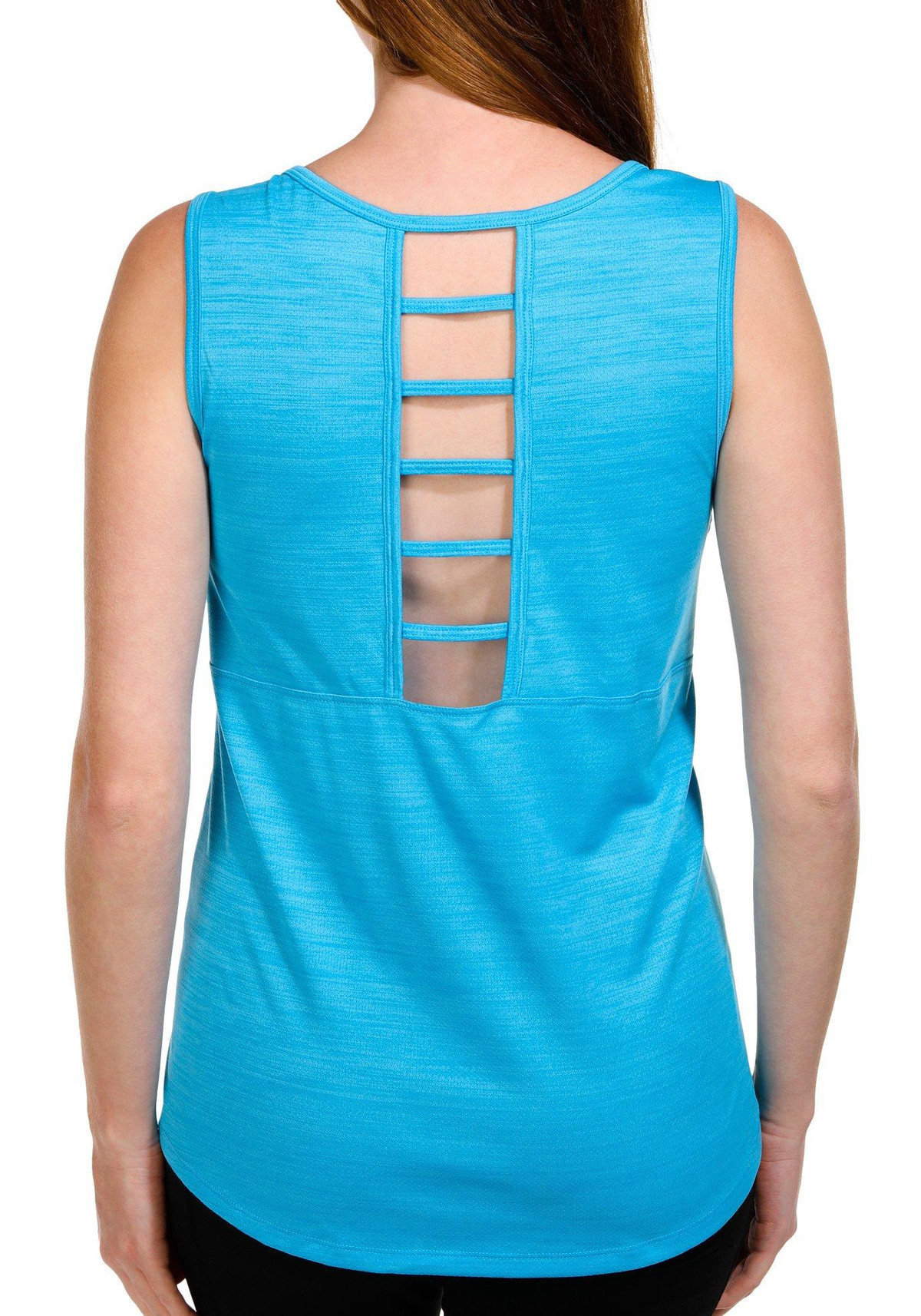 Stay cool and stylish in this solid tank top by RB3 Active! It features a soft and comfortable fabric, solid-color design, back cutout, and a round neckline. The top length measures approximately 25 in. Fabrication 66% polyester, 28% rayon, and 6% spandex.