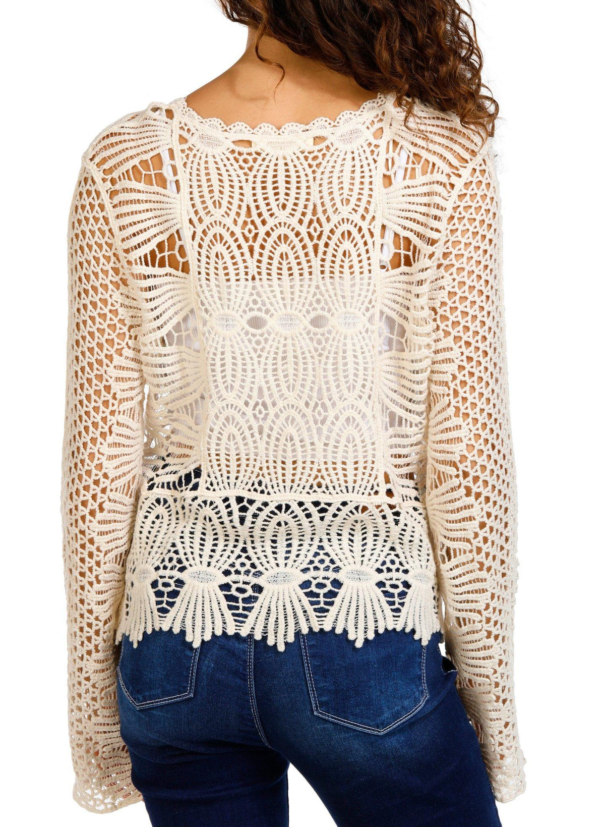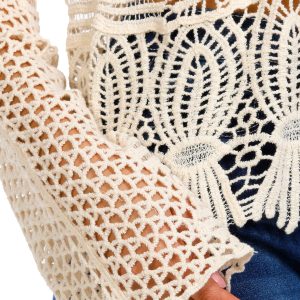 This long sleeve top is crafted from intricate crochet fabric for a breezy, textured look. Lightweight and stylish, it’s perfect for layering or wearing on its own for effortless charm.