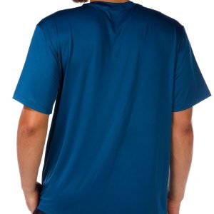 This active t-shirt features a sleek design with performance stretch for ease of movement during athletic activities. Made from a smooth blend of polyester and spandex, it offers comfort and flexibility for workouts or casual wear.