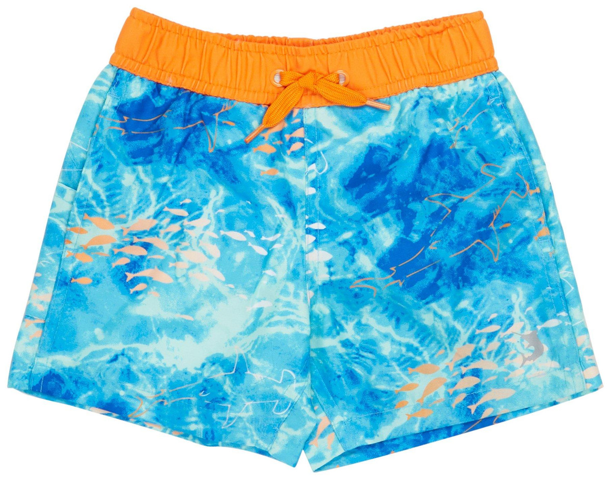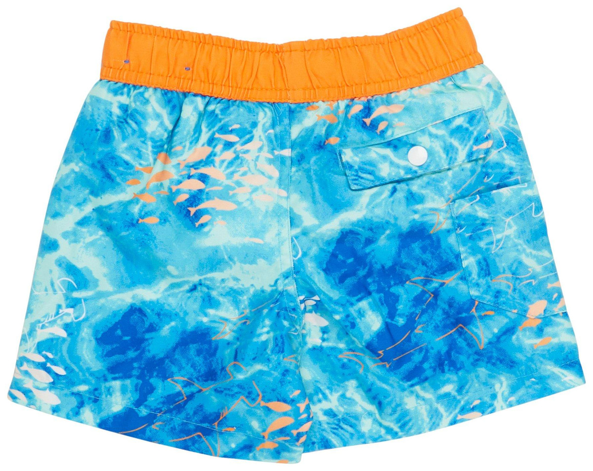These baby boys swim trunks by Reel Legends are designed for comfort and convenience. Featuring an elastic waist and mesh interior, they provide a secure fit and quick drying support. Handy side pockets and a back pocket with button closure add functionality for beachside play.