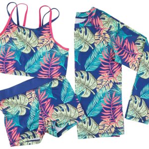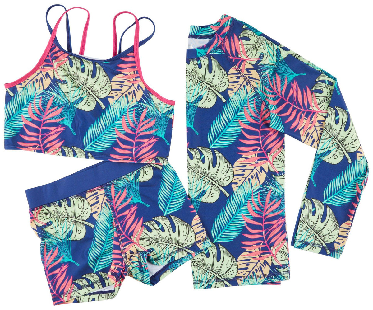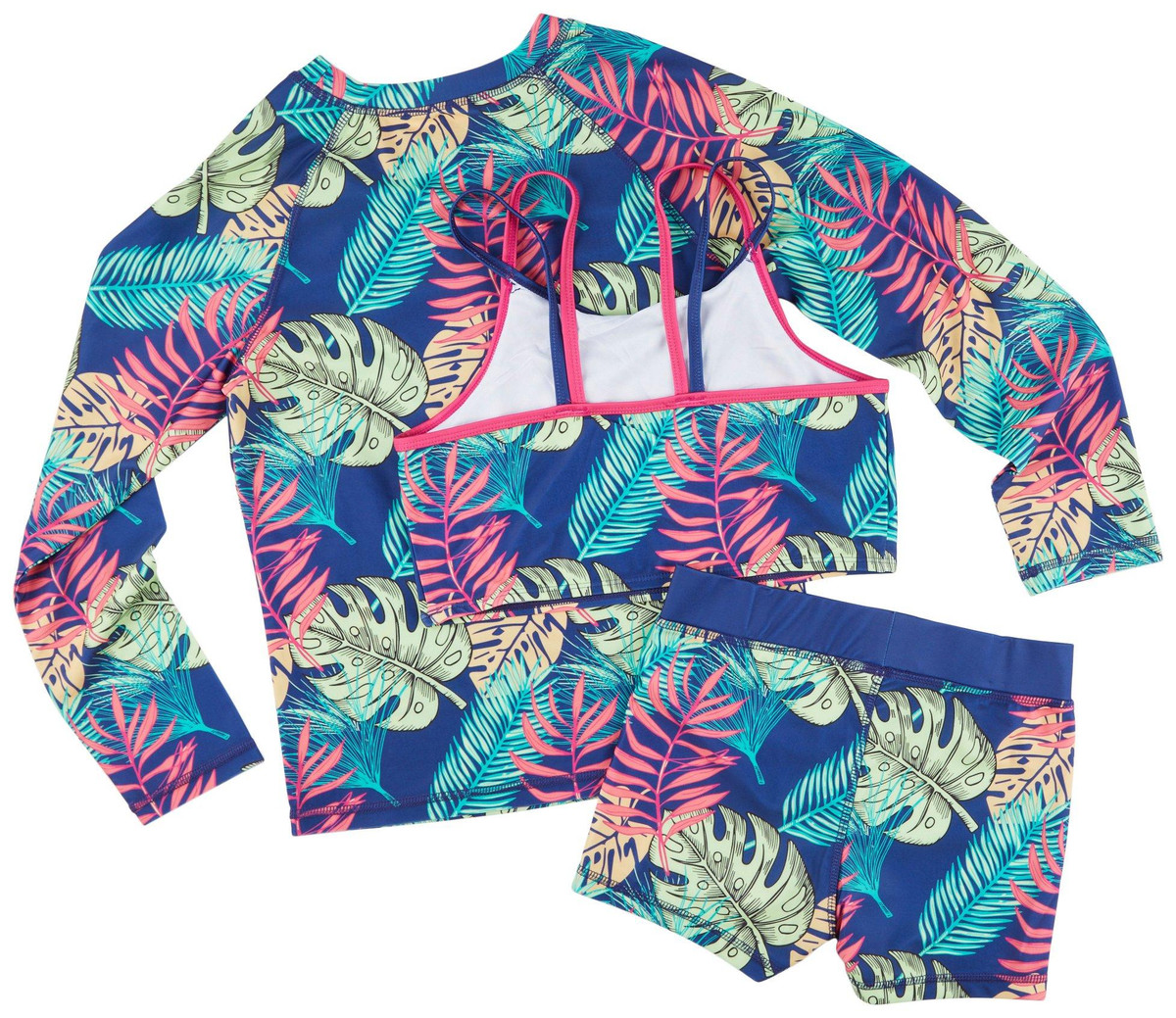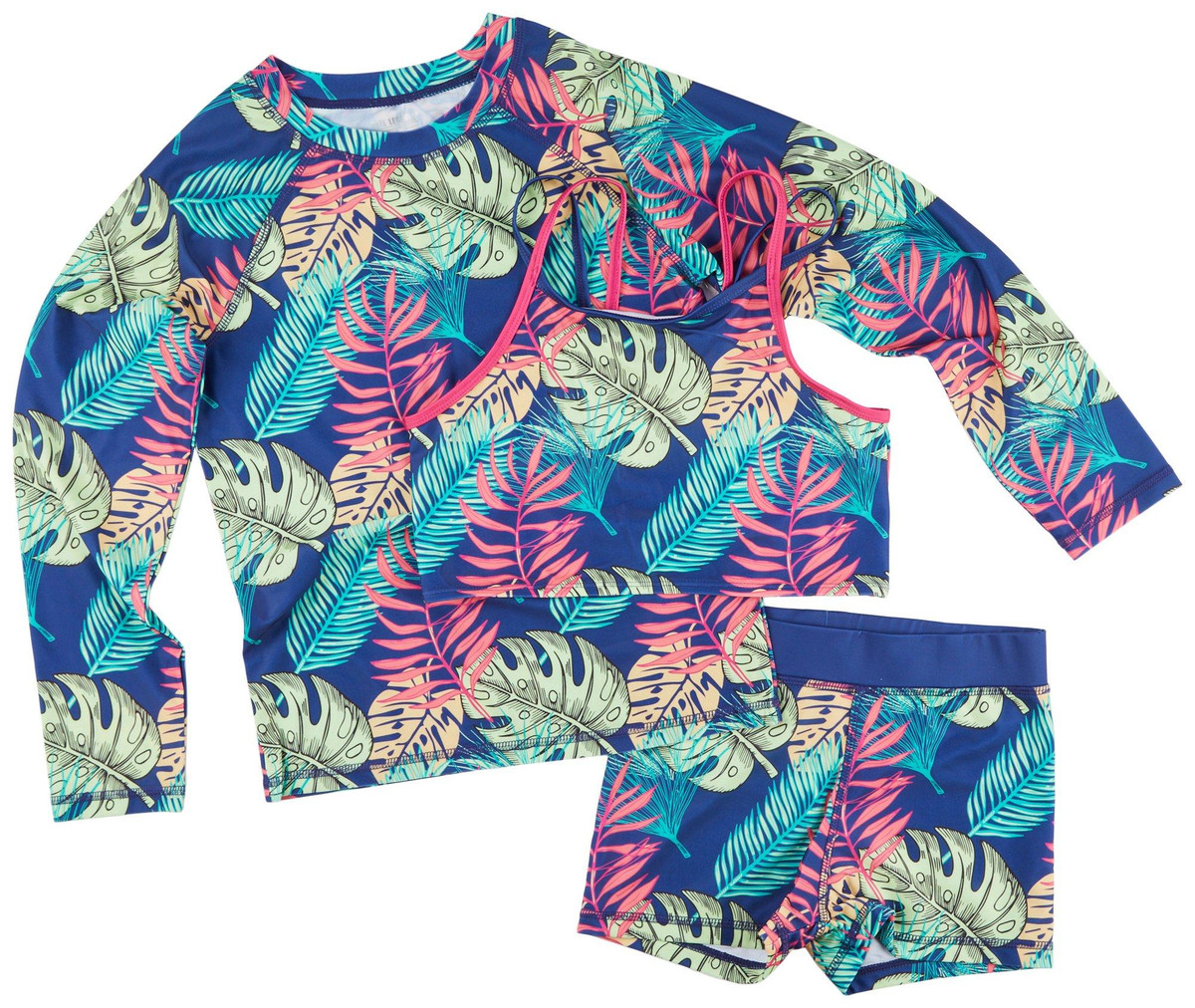 Keep your little ones stylish and protected with this Girls 3-piece Swimsuit Set! This adorable set features fun Colors patternand solid and includes a long sleeve top, Bikini Top and matching shorts, offering excellent sun protection for those long beach days. Fabrication is 85% polyester, 15% spandex.