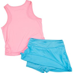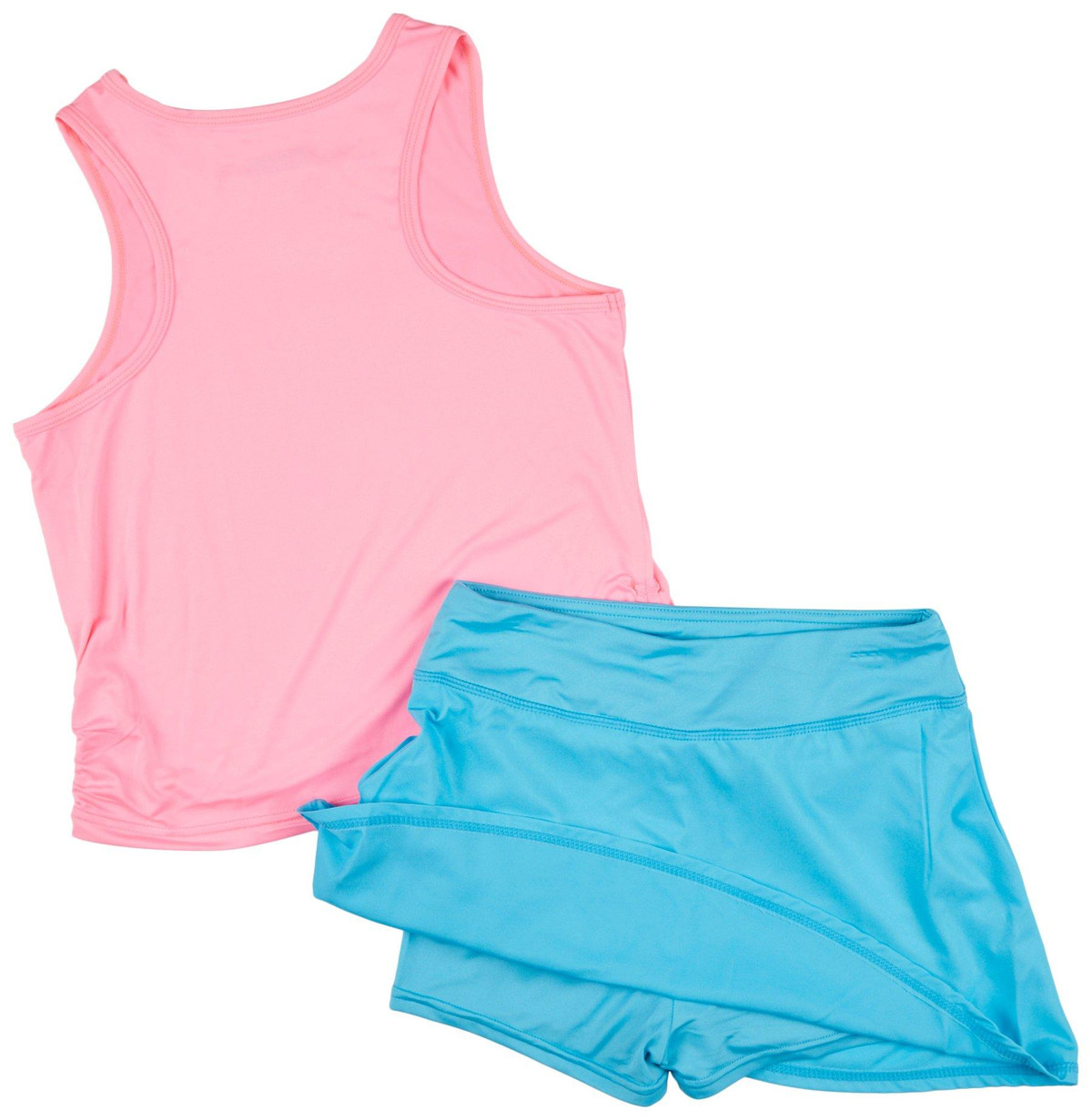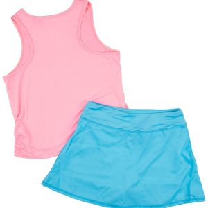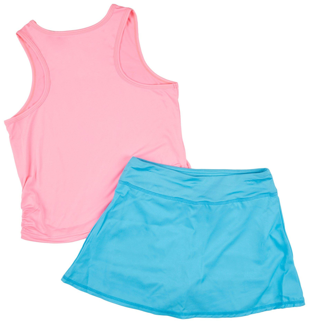 Our Big Girls Active 2 Pc Skort Set is made from a stretchy polyester-spandex blend for all-day performance. Featuring a racerback tank with a Florida-inspired screen print and a solid skort, this set offers UPF 30 protection and flexible comfort for active days in the sun.
