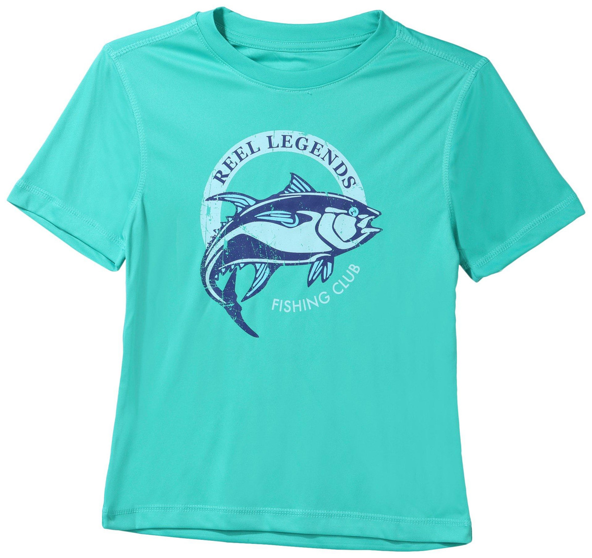 Perfect for land or sea, this t-shirt features moisture-wicking technology, quick-dry properties, and UPF 50 sun protection. The stylish front screen print and classic crew neckline combine functionality with fashion. The high-performance fabric is recommended as an effective UV protectant for covered areas. Gear up with Reel Legends and conquer your next journey with confidence! Fabrication is 100% polyester.