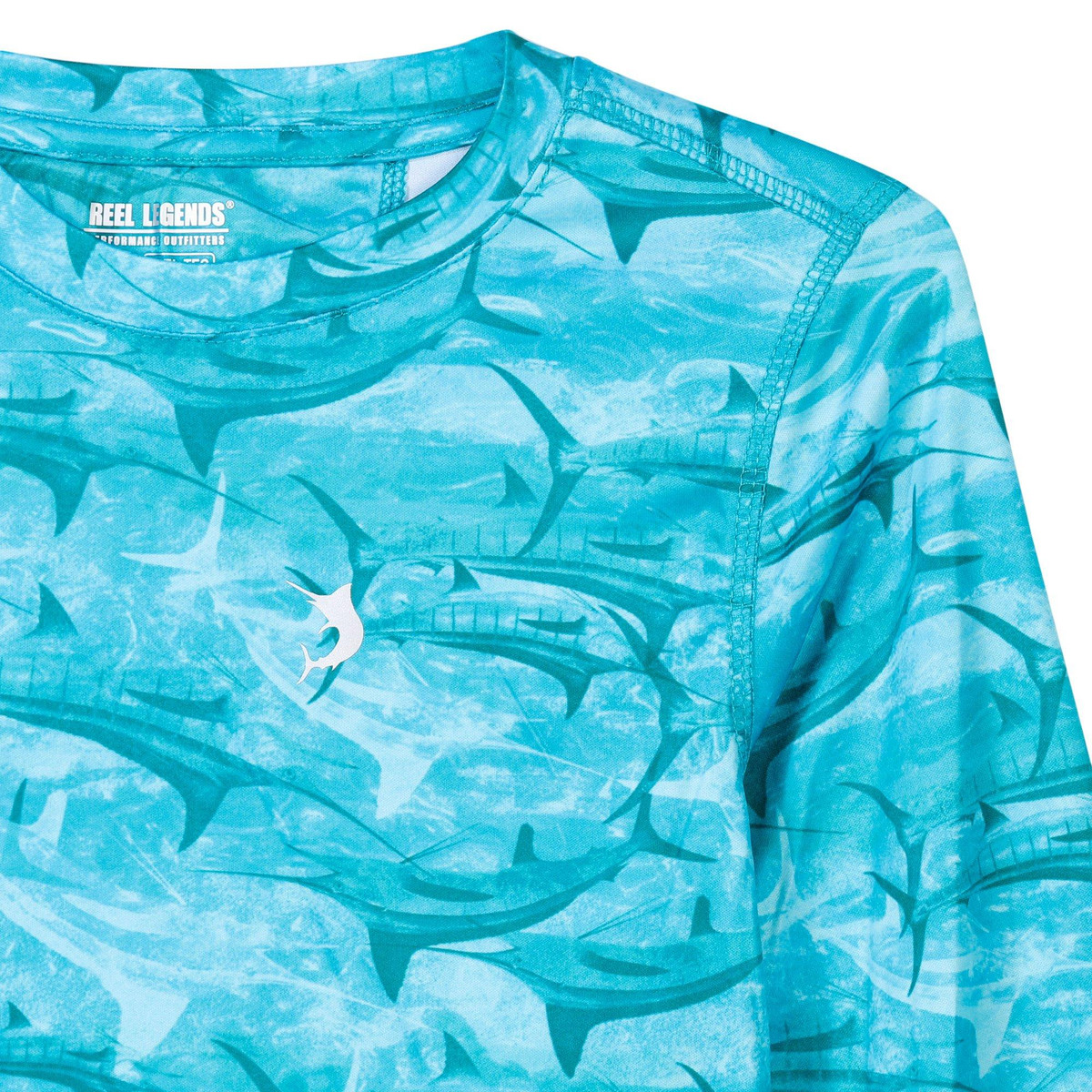The Little Boys Long Sleeve Reel Tec Shirt by Reel Legends is made from 100% polyester and packed with performance tech. It offers UPF 50 sun protection, moisture wicking, quick dry comfort, sweat activated cooling, and performance stretch. Featuring a bold shark pattern and chest branding, it’s perfect for active days on land or sea.