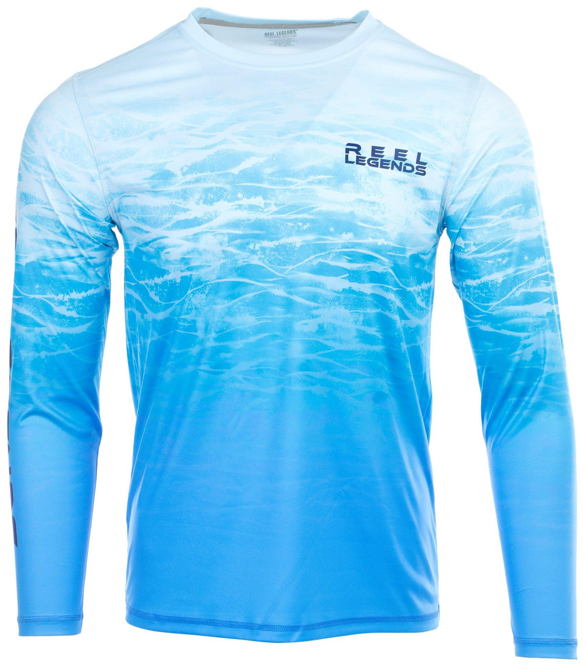 Stay cool and protected with our Men’s Long Sleeve Reel-Tec Shirt. Featuring a striking Marlin Print Design, this shirt combines style with advanced functionality. The sweat-activated cooling technology ensures you stay comfortable even on the hottest days, while the built-in sun protection shields you from harmful UV rays. Perfect for outdoor adventures, this shirt is designed to keep you looking sharp and feeling great all day long. Material is 100% recycled.