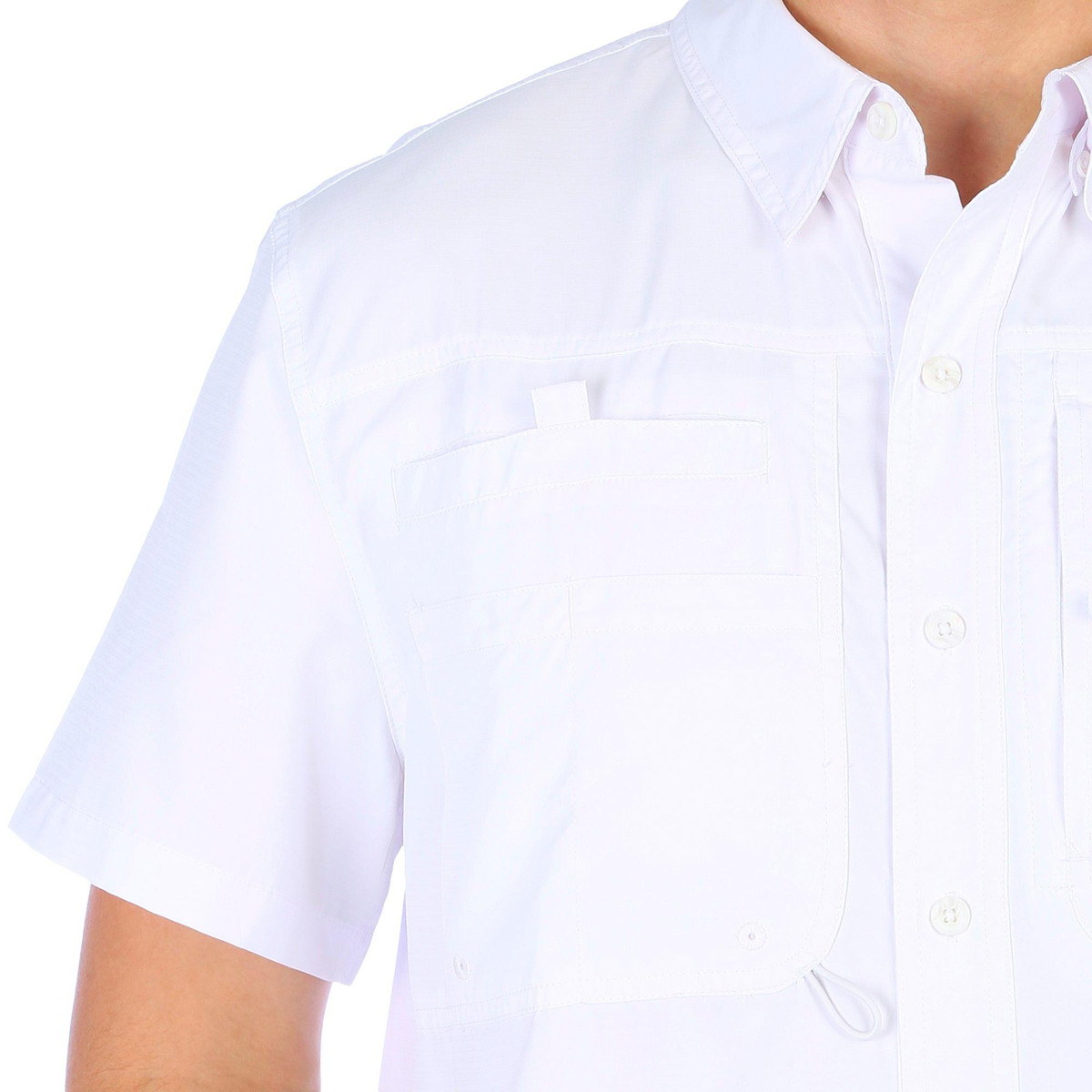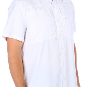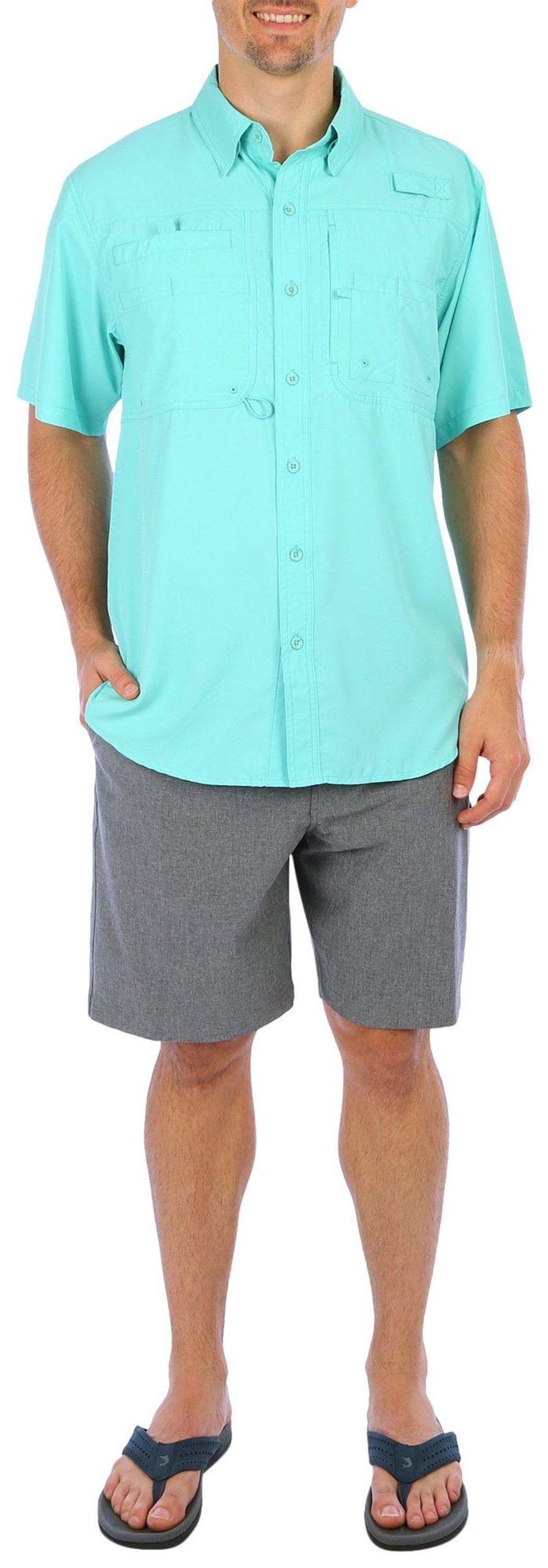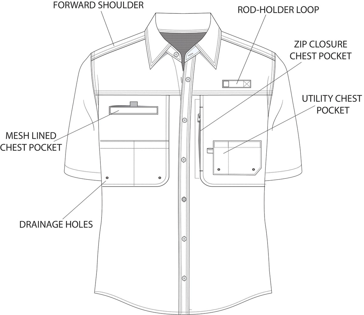 Introducing the Saltwater II Shirt by Reel Legends the perfect blend of functionality and style for your outdoor escapades! This solid color shirt features a classic button-down front and a point collar for a timeless look. The fully vented back panel ensures maximum breathability, keeping you cool in any condition. With six individual front chest pockets, including a zipped pocket and a convenient rod-holder, youll have all the storage you need for your fishing adventures.