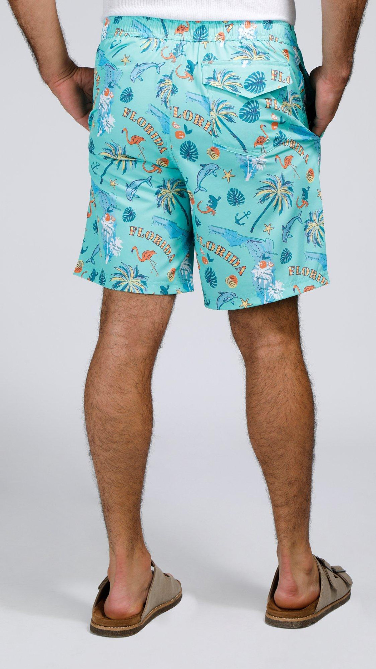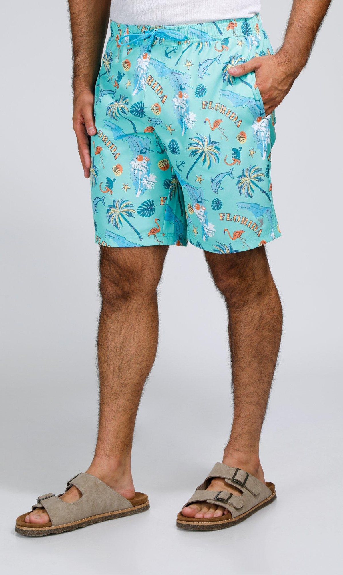 Make a bold statement with our Men’s Tropical Print 9 E-Board Swim Trunks. Featuring vibrant tropical patterns, these trunks are crafted from quick-dry fabric with a built-in mesh brief, elastic waistband, and secure drawstring for all-day comfort and coverage in and out of the water.