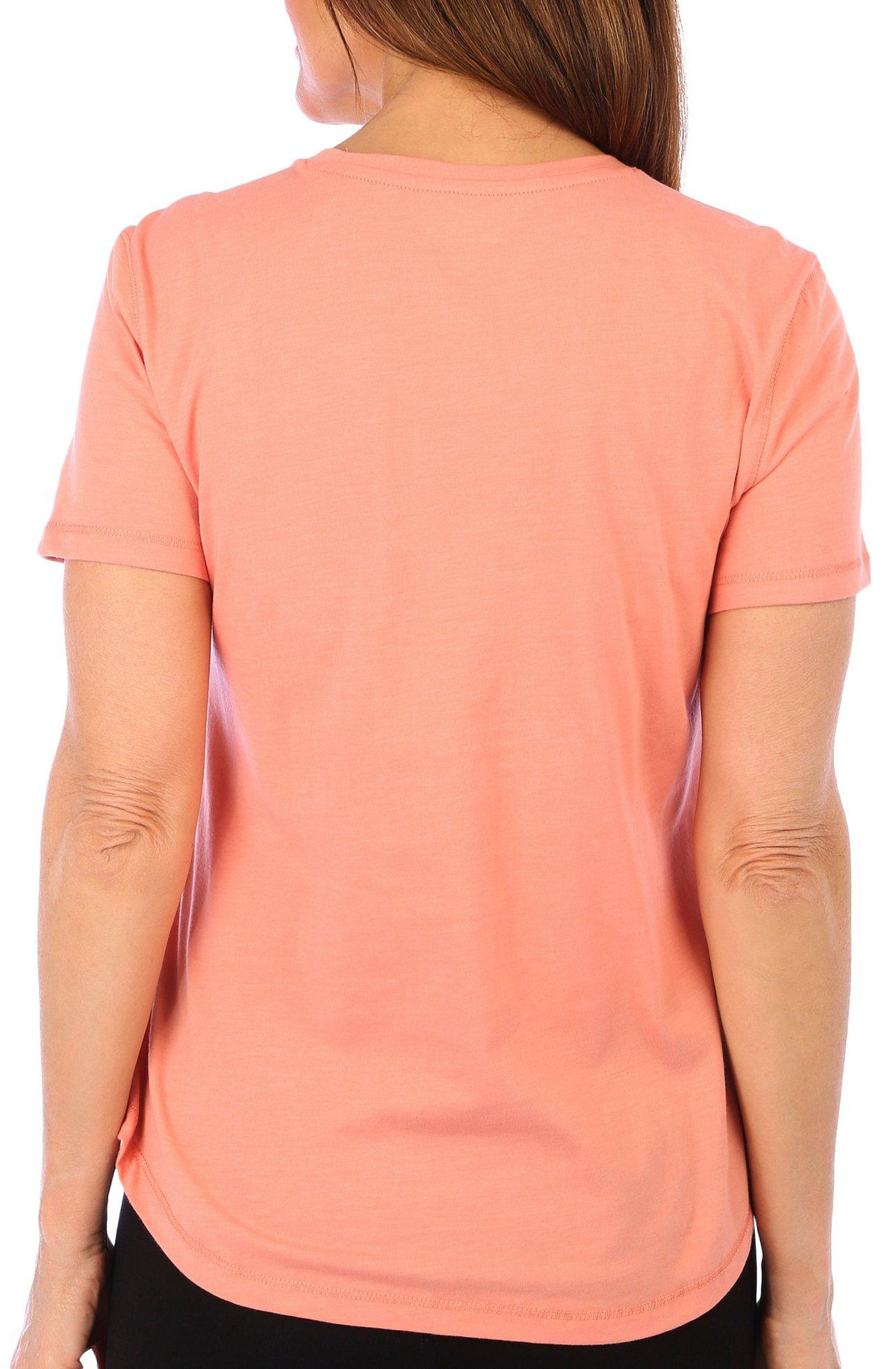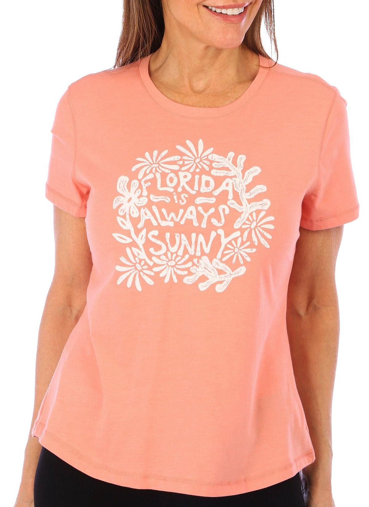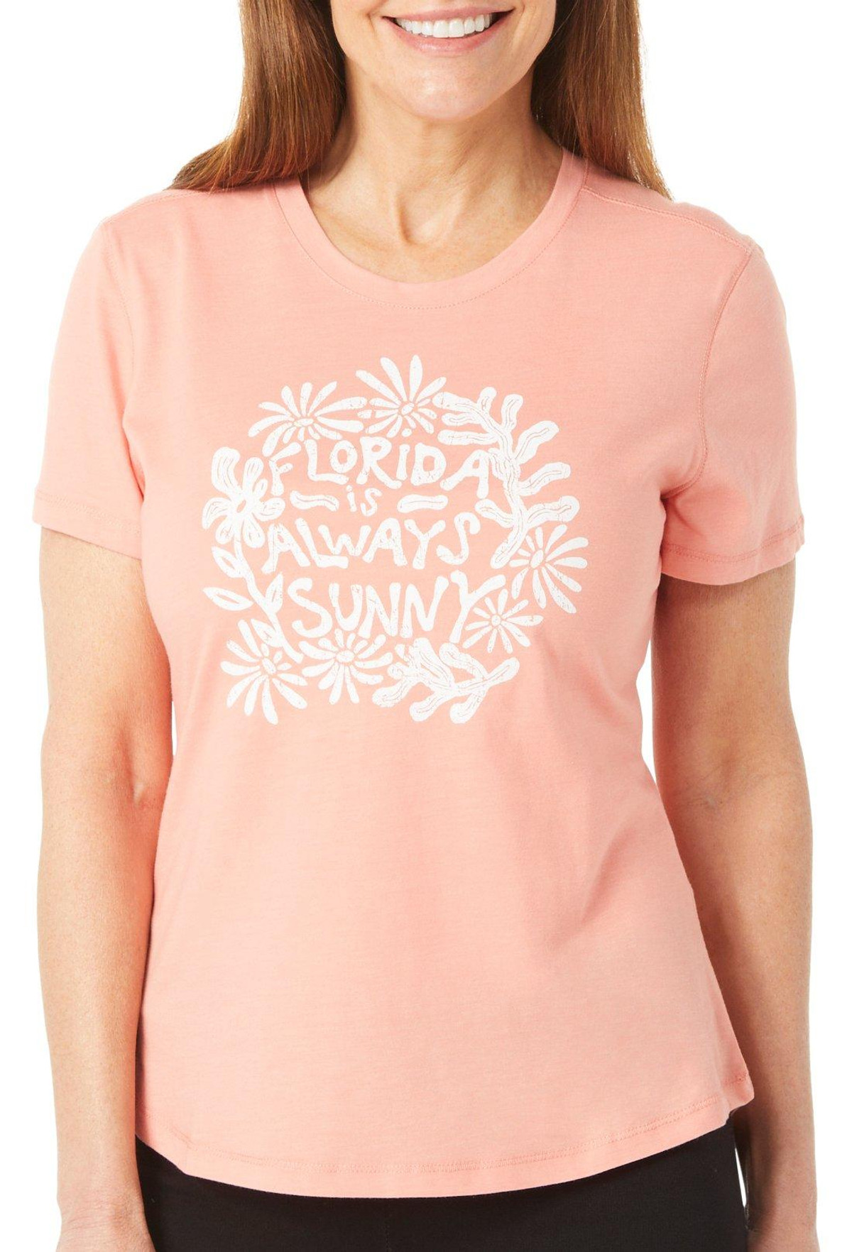 Elevate your casual wardrobe with this short sleeve top. Crafted from a soft and comfy knit, this tee features a graphic screen print on the front, a delicate design that adds a touch of artistry. Whether youre pairing it with jeans or a skirt, this top effortlessly combines style and comfort for any occasion! The top length measures approximately 23 inches.