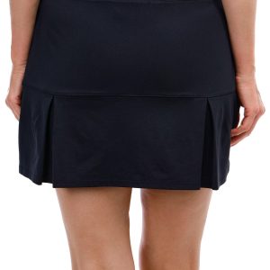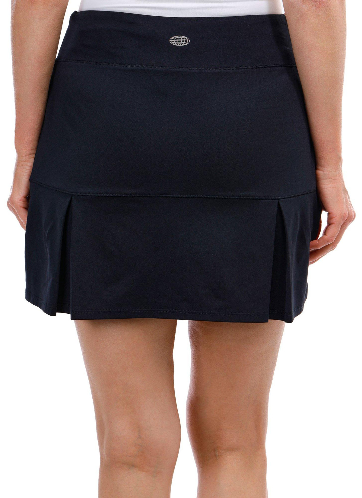 This pocket-free Reel Tec skort features a solid color design on lightweight stretch knit fabric, a wide elastic waistband, moisture-wicking, quick-dry, and sweat activated technologies, UPF 50+ sun protection, and a built in short. The inseam measures approximately 4 in. Skort length measures approximately 16 in. Fabrication 92% recycled polyester, 8% spandex.