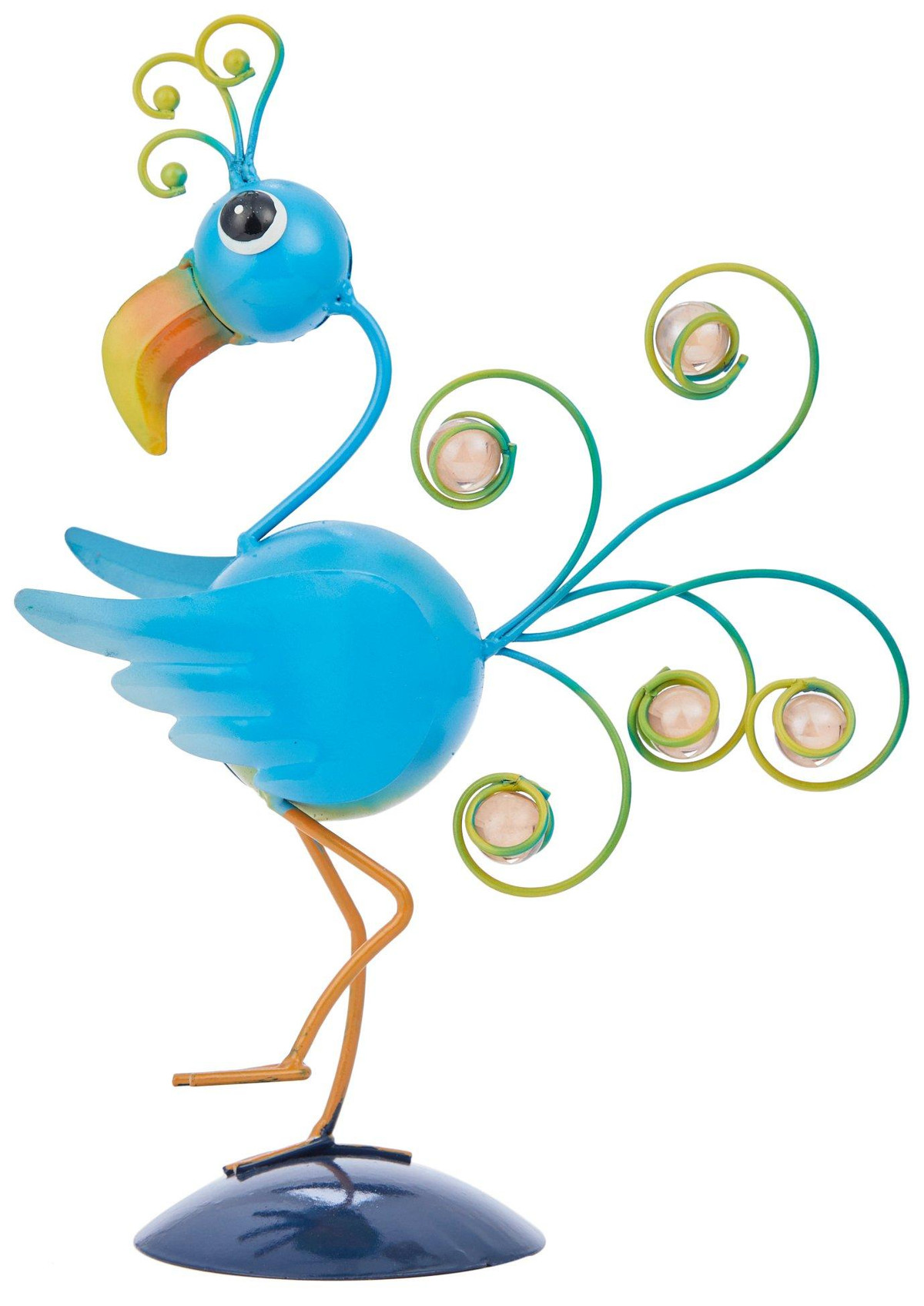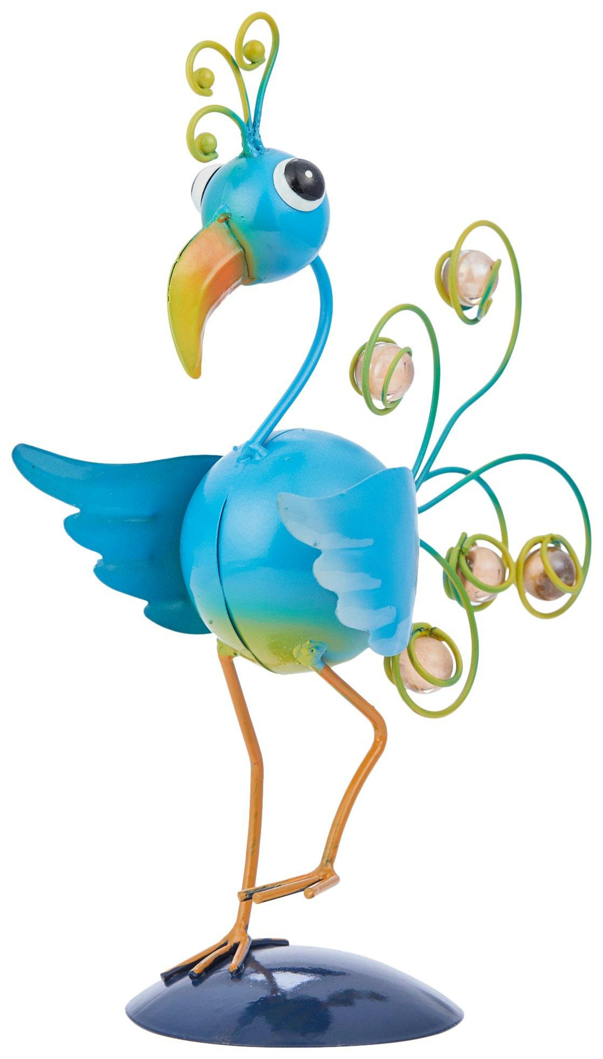 Add a touch of tranquility to your outdoor space with this 11 in Metal Dancing Bird Garden Accent. This beautiful piece is crafted from high-quality metal and designed with both fun and functionality in mind. This adorable accent piece adds a playful touch to your garden. Measures approximately 11 in x 7.5 in x 3.5 in.
