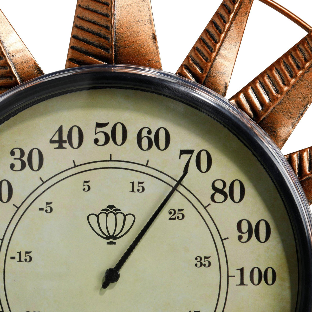 Add a splash of nautical charm to your home with this 14 in Compass Thermometer, a captivating and functional addition to your home décor. This beautifully designed thermometer features a compass motif, blending celestial charm with practical utility. It accurately displays temperature while enhancing any indoor or outdoor space. Crafted from durable materials, it is perfect for gardens, patios, or living areas. Measures approximately 14 in x 14 in x 2 in.