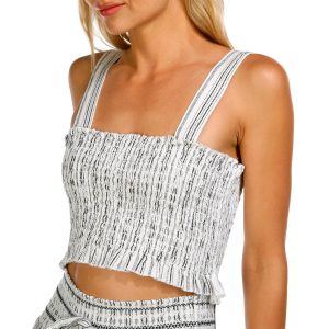 Introducing our Juniors 2 Pc Stripe Smock Pants Set, crafted from a blend of cotton, linen, and rayon. This stylish set features a chic striped print and includes a sleeve crop top with an all-over smocked design and a square neckline. The matching pants boast a smocked waistband, front pockets, and a drawstring waistband for added comfort.