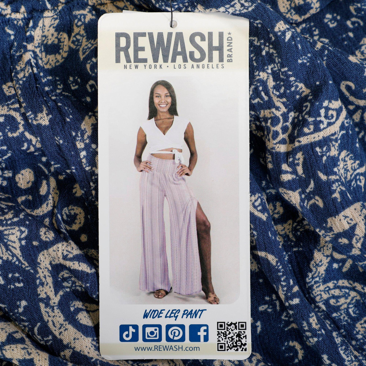 Breeze through your day in these Juniors Paisley Wide Leg Pants. Featuring a smocked waistband for all-day comfort, a flowy wide-leg silhouette, and chic side slits, they are perfect for effortless style with a touch of flair. Fabrication 100% rayon